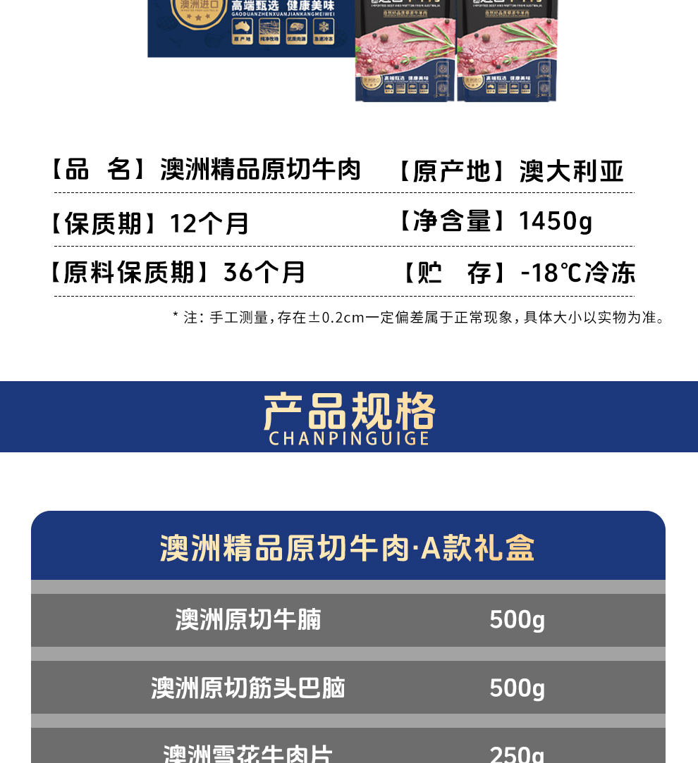 澳洲精品原切牛肉A款礼盒(注:冷冻生鲜类商品不退,质量问题只换)