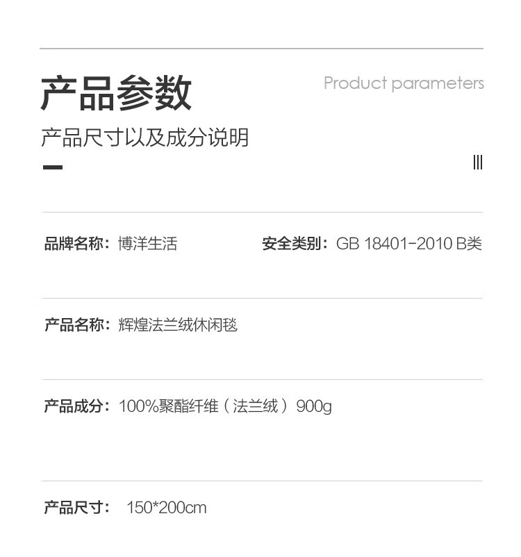 博洋生活 辉煌法兰绒休闲毯150*200cm