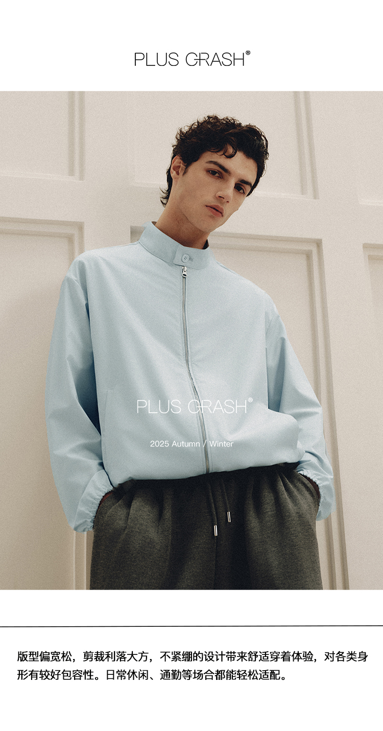 PLUS CRASH老钱风极简高智简约立领长袖拉链夹克秋季外套上衣宽松
