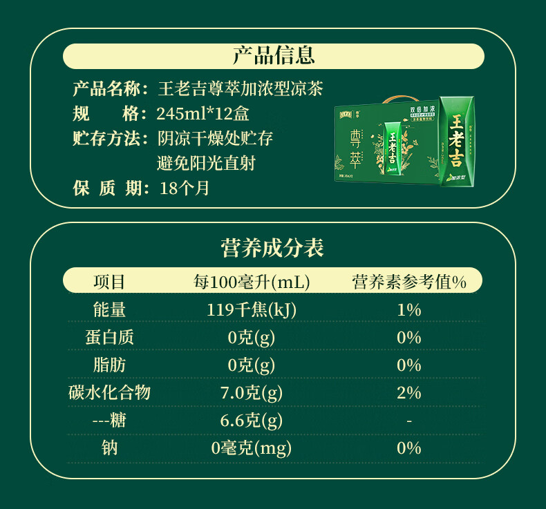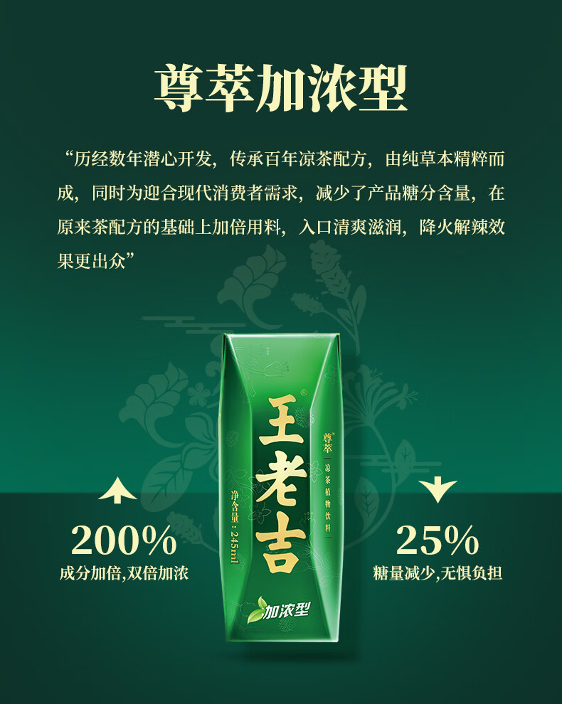 王老吉尊萃加浓型凉茶245ml*12盒草本植物茶饮料礼盒装