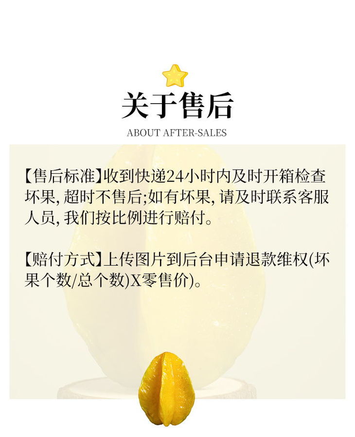 【售后标准】收到快递24小时内及时开箱检查坏果,超时不售后;如有坏果,请及时联系客服人员,我们按比例进行赔付。