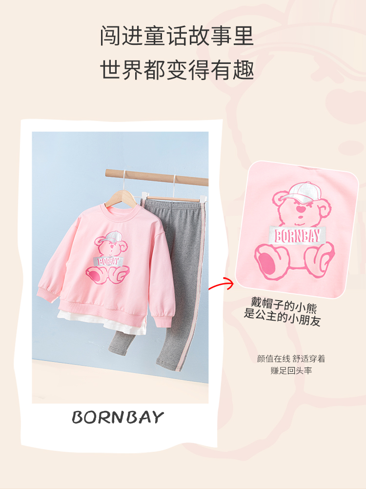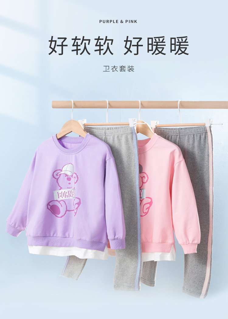 贝贝怡童装春秋温柔甜美卫衣套装女童时髦洋气运动两件套
