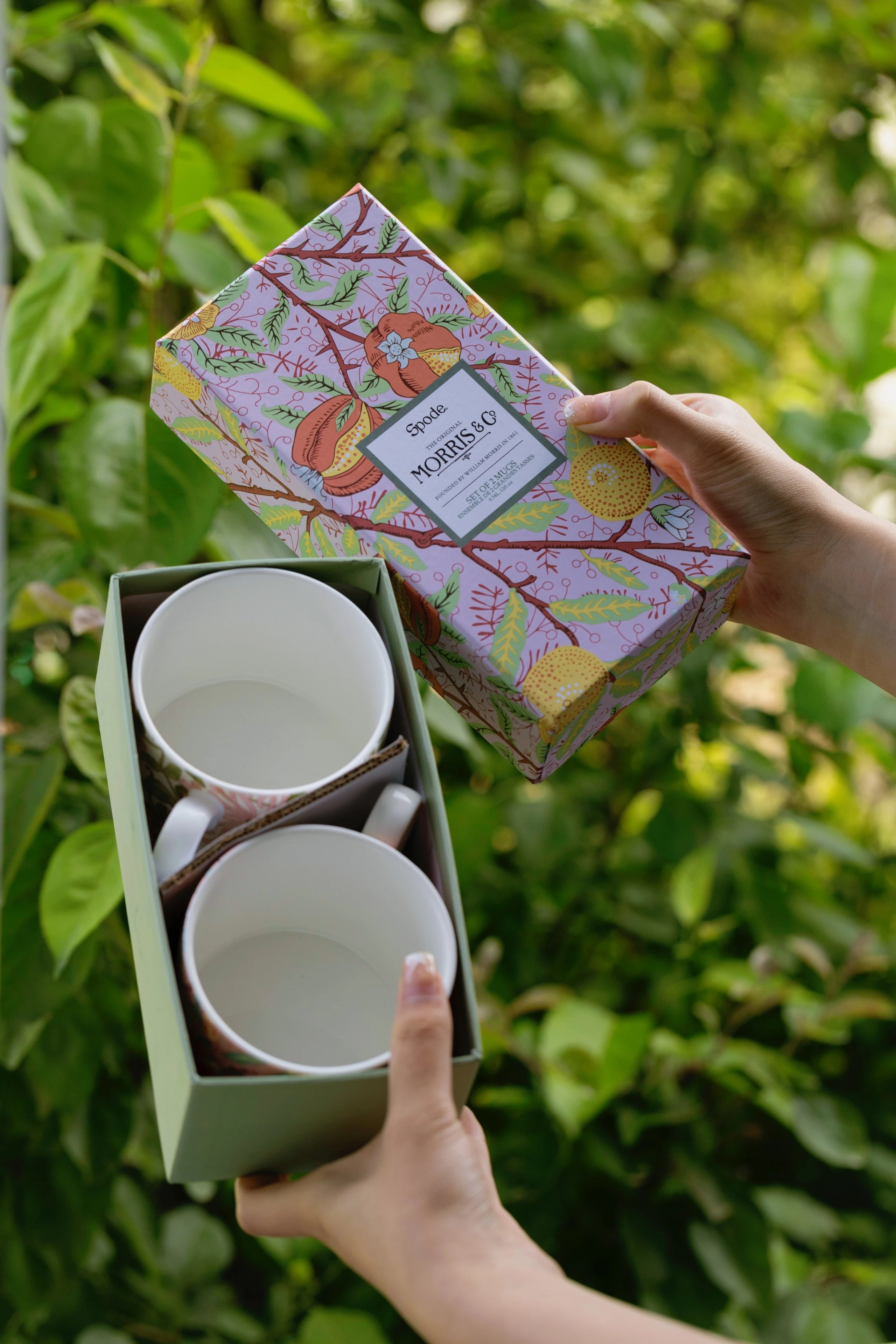 这些瓷杯高雅地包装在定制的MORRIS &CO的礼盒中