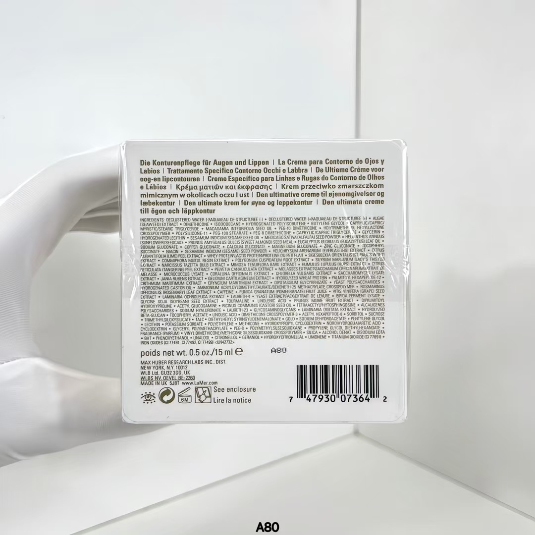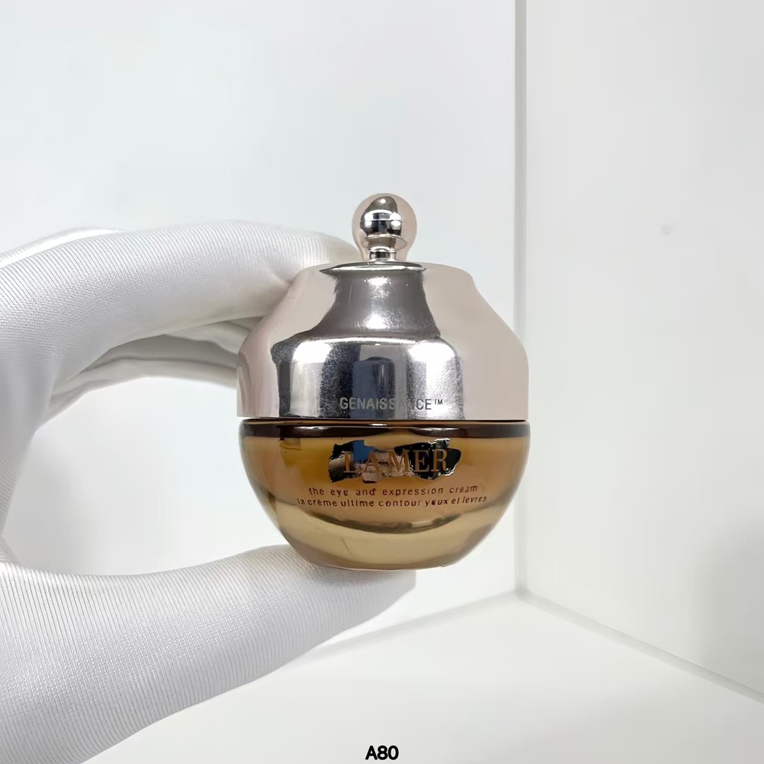 海蓝之谜鎏金焕颜眼霜15ml ) A80编码!主打成分一活性精萃Miracle Borth的结晶浓缩精华,并添加精炼黄金,改善眼周黑眼圈、眼袋及细纹皱纹,淡化表情纹。配有天然海石按摩棒(俗称导入片)粉色奶油Cream质地,比较厚重,味道清新很好闻。配合按摩棒使用肌肤能够很好的吸收!