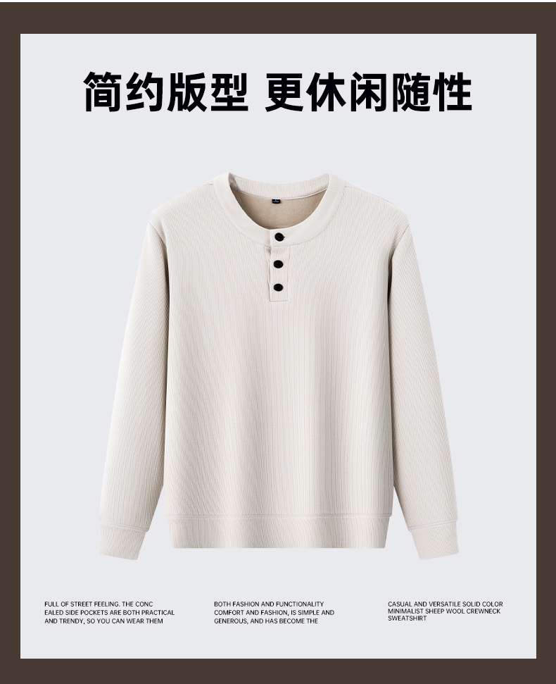 占姆士套头卫衣秋冬新款绵羊毛圆领纽扣款圆领加绒卫衣套头上衣
