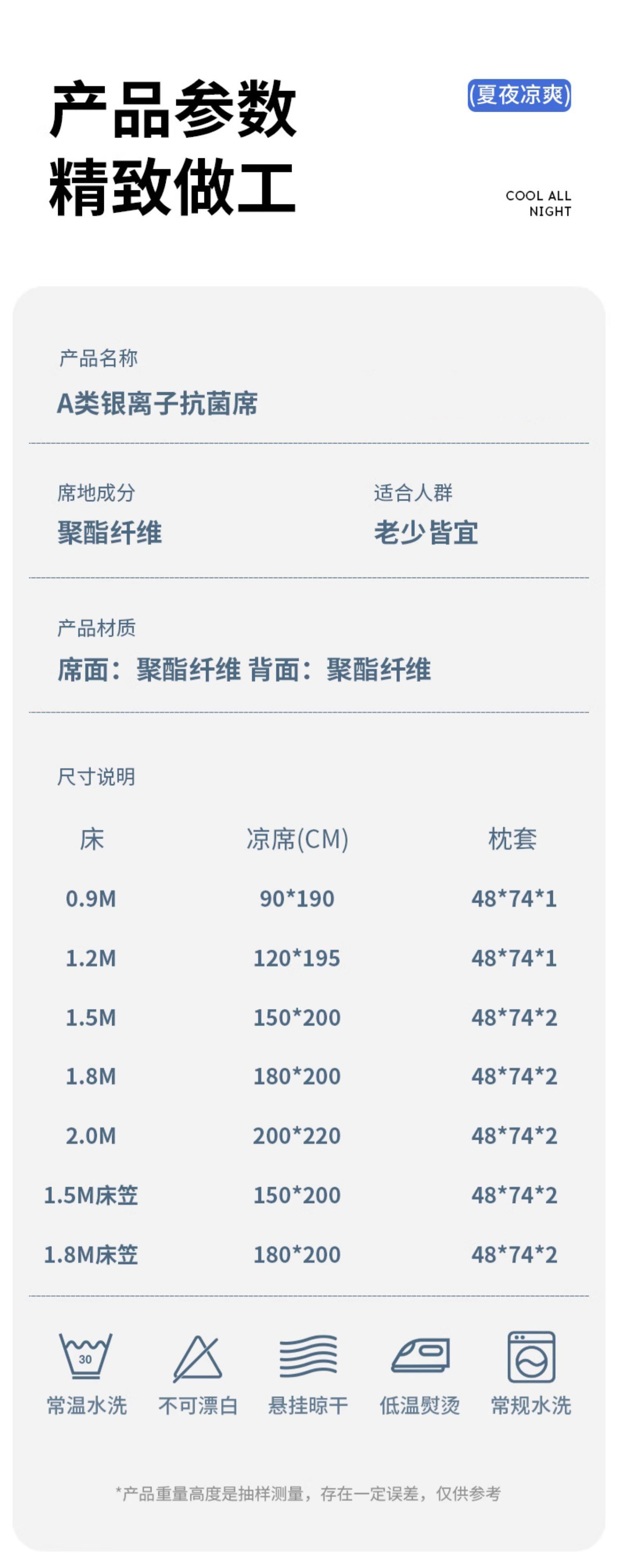 日用百货- 夏季天三明治床笠冰丝凉席a类可机洗冰藤席空调软席子
