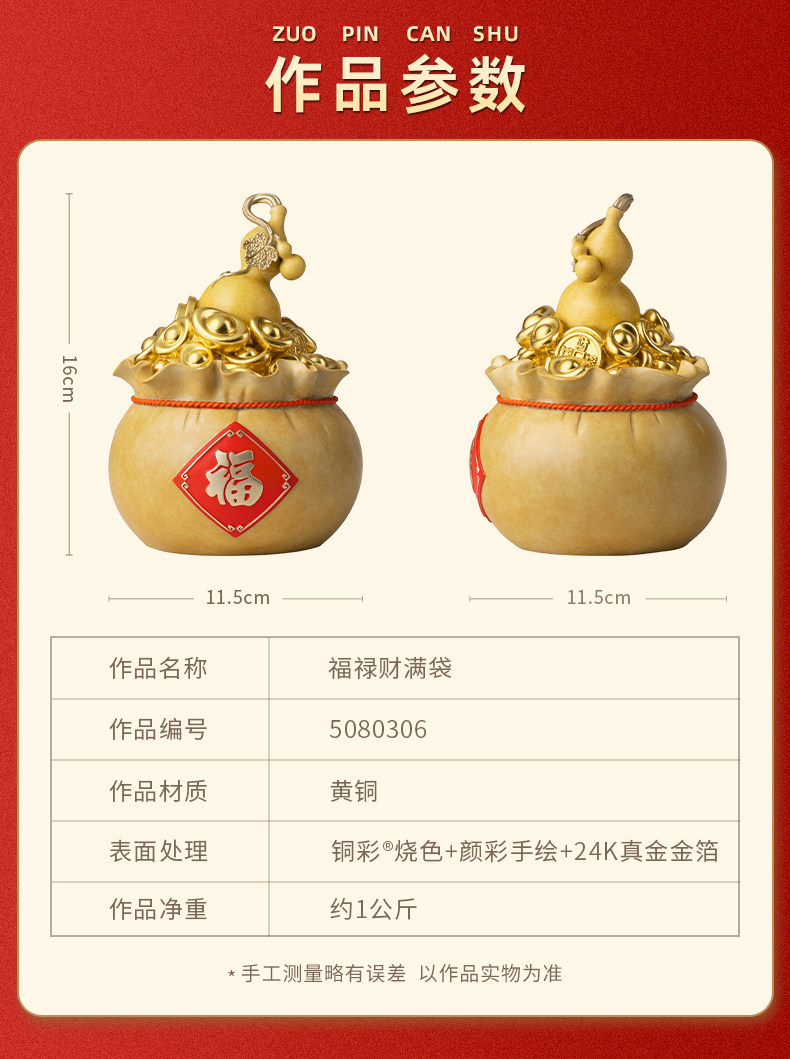 铜师傅《福禄财满袋》桌面客厅玄关家居工艺装饰品铜摆件