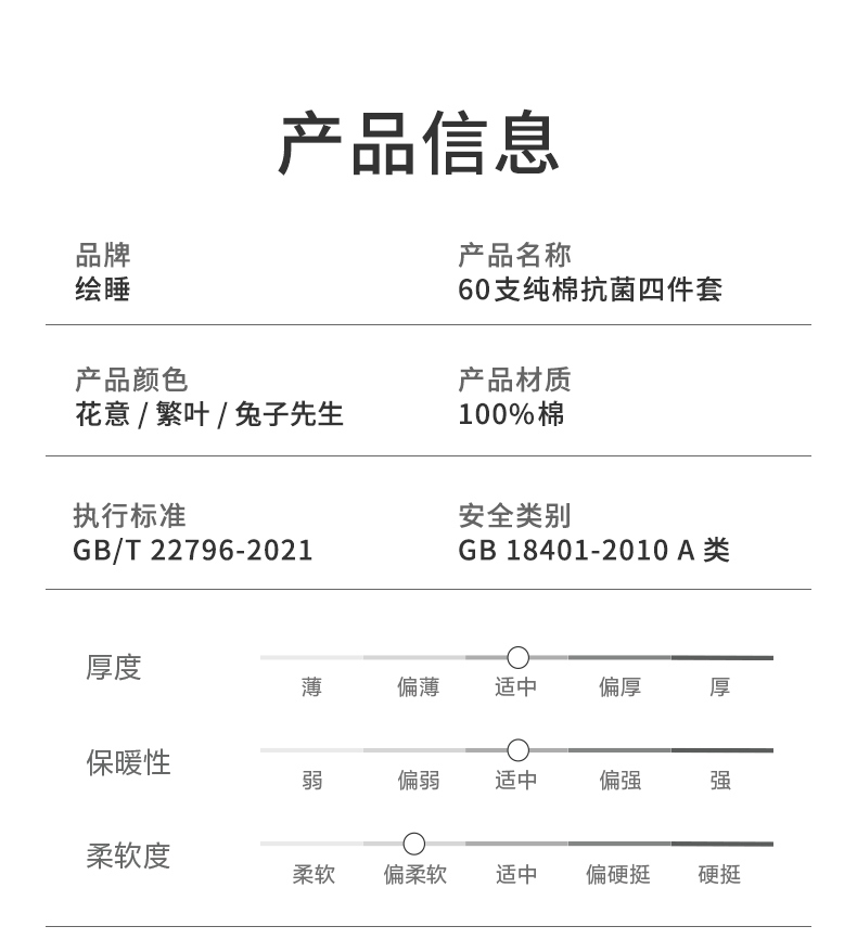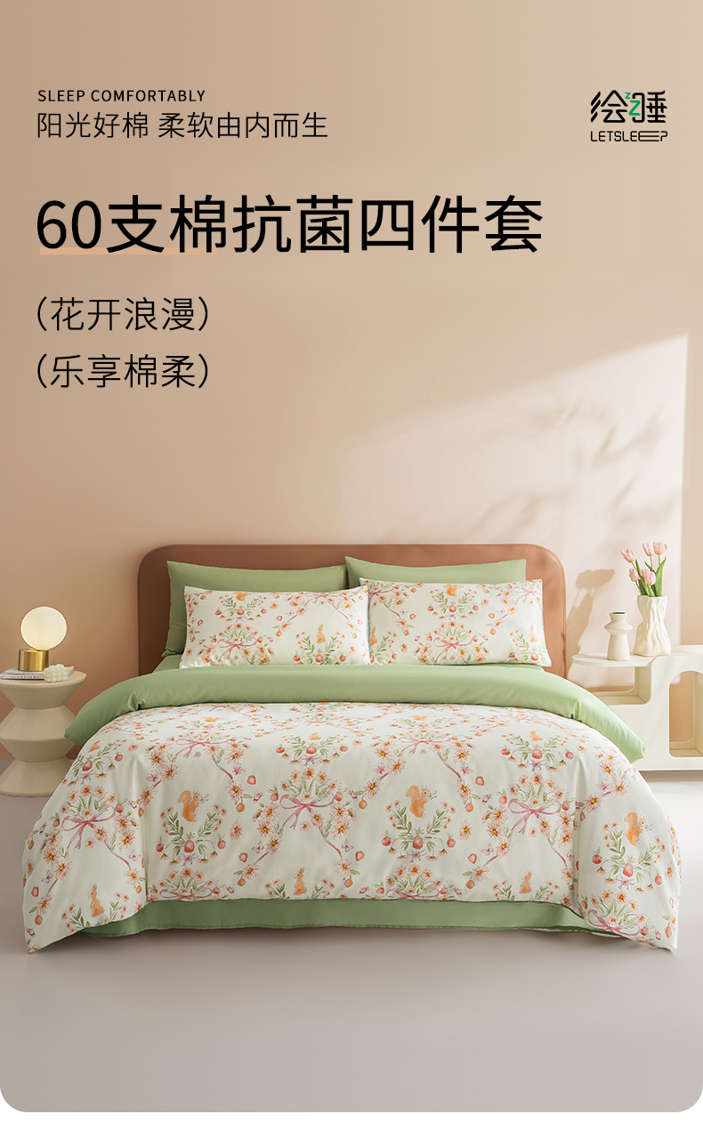 【文怡之选】绘睡 60支A类棉质四件套 床单&被罩&枕套 柔软舒适 床品 亲肤透气 多色多尺码可选