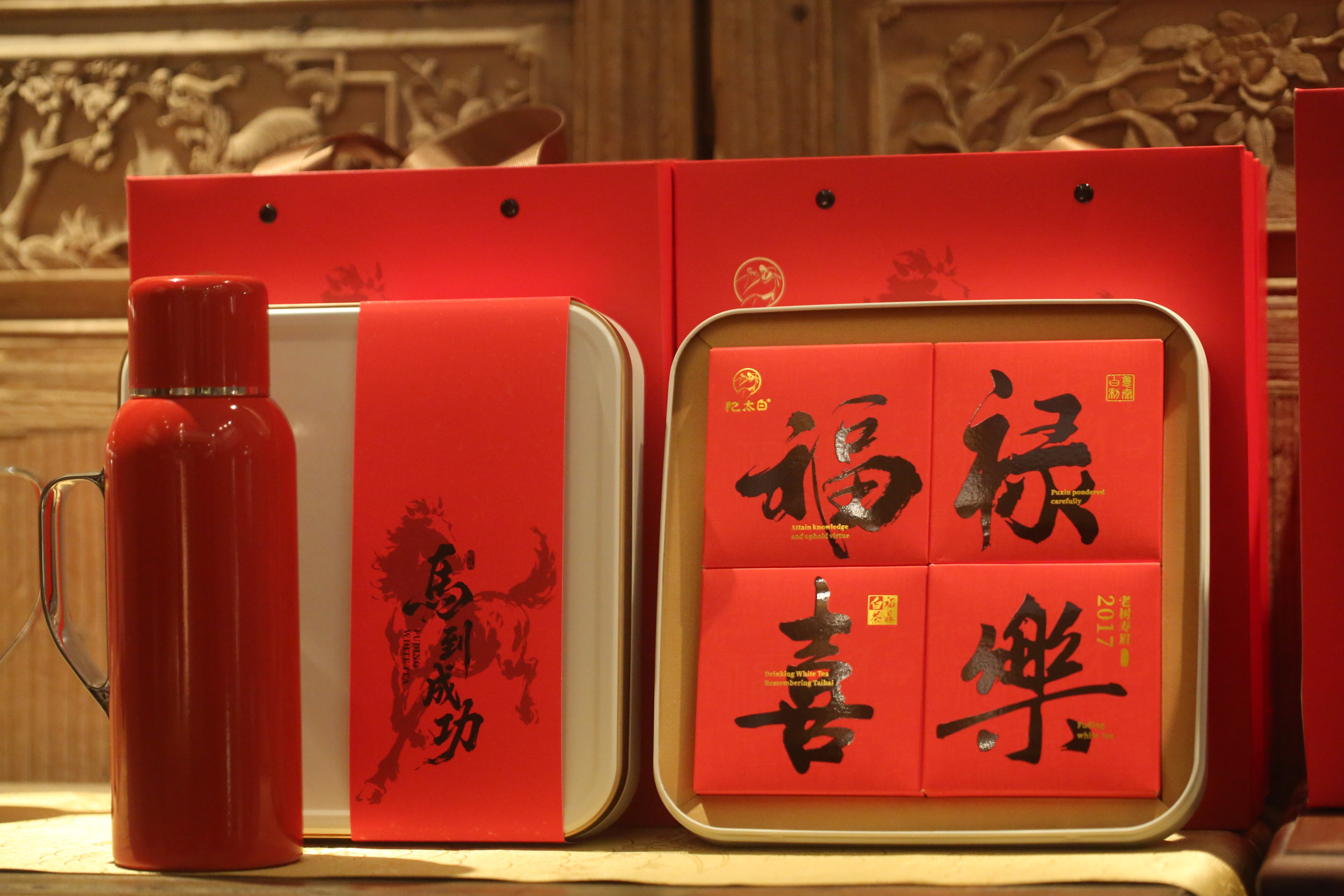 汇于典雅正红礼盒,喜庆盈门。