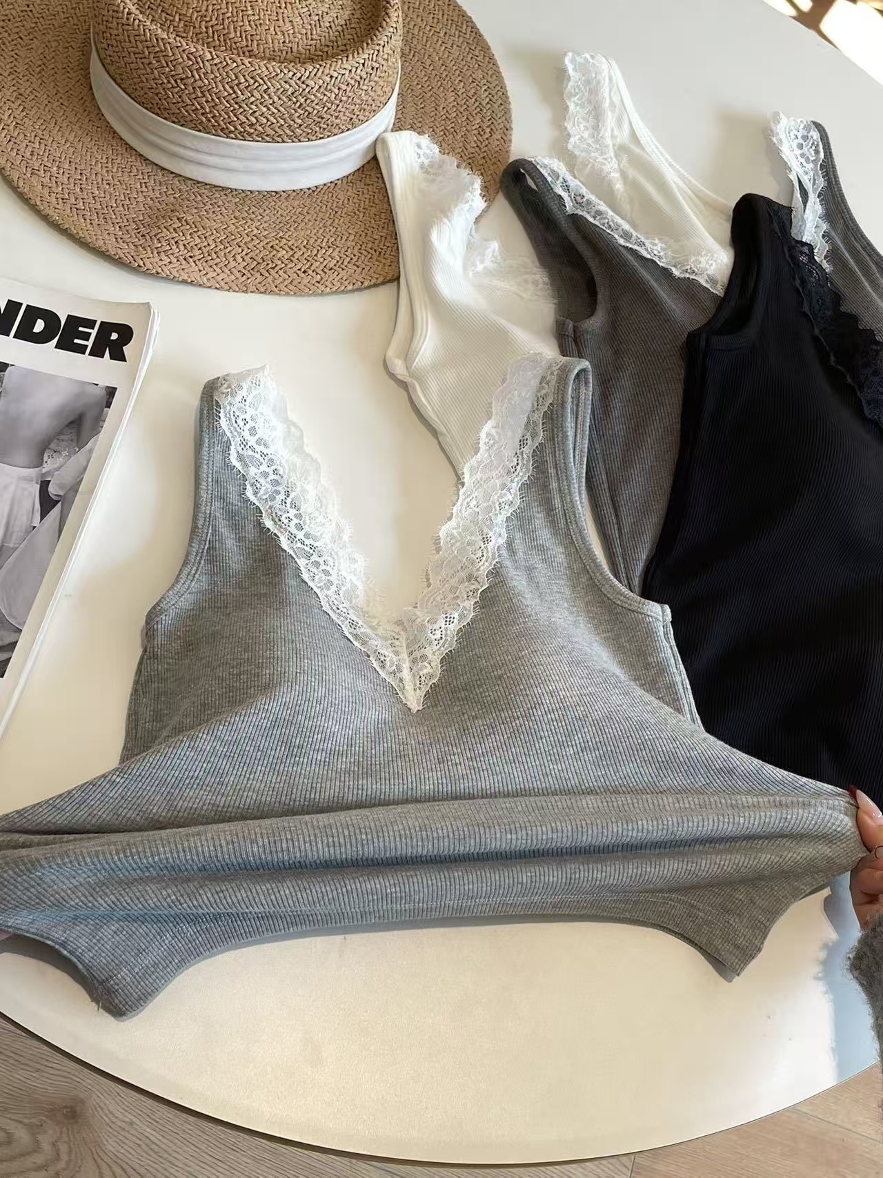 100螺纹棉,弹性非常大。打底背心。120斤以下可外穿。
