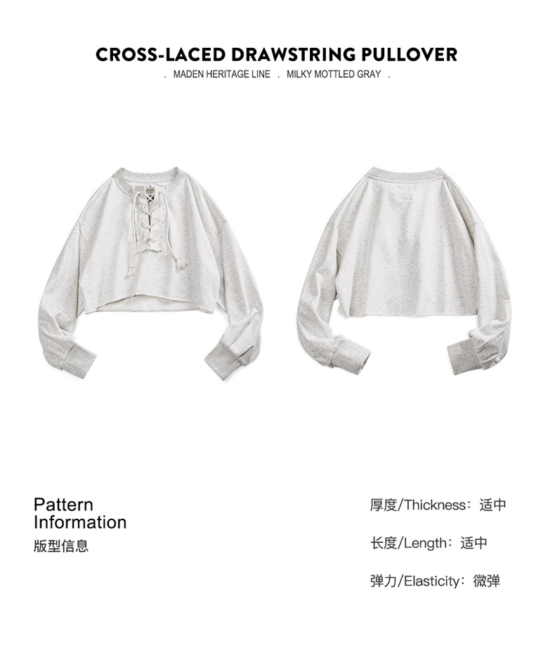 马登高腰短款卫衣春秋抽绳V领休闲宽松长袖甜酷上衣设计感小众女