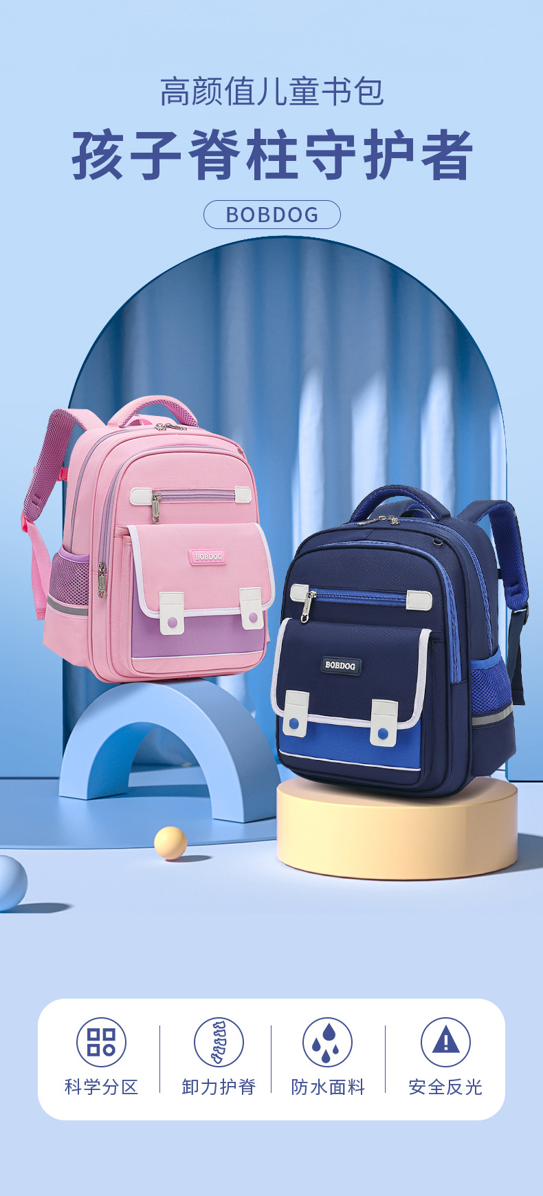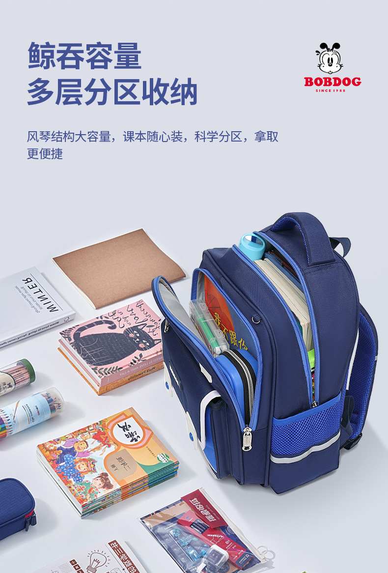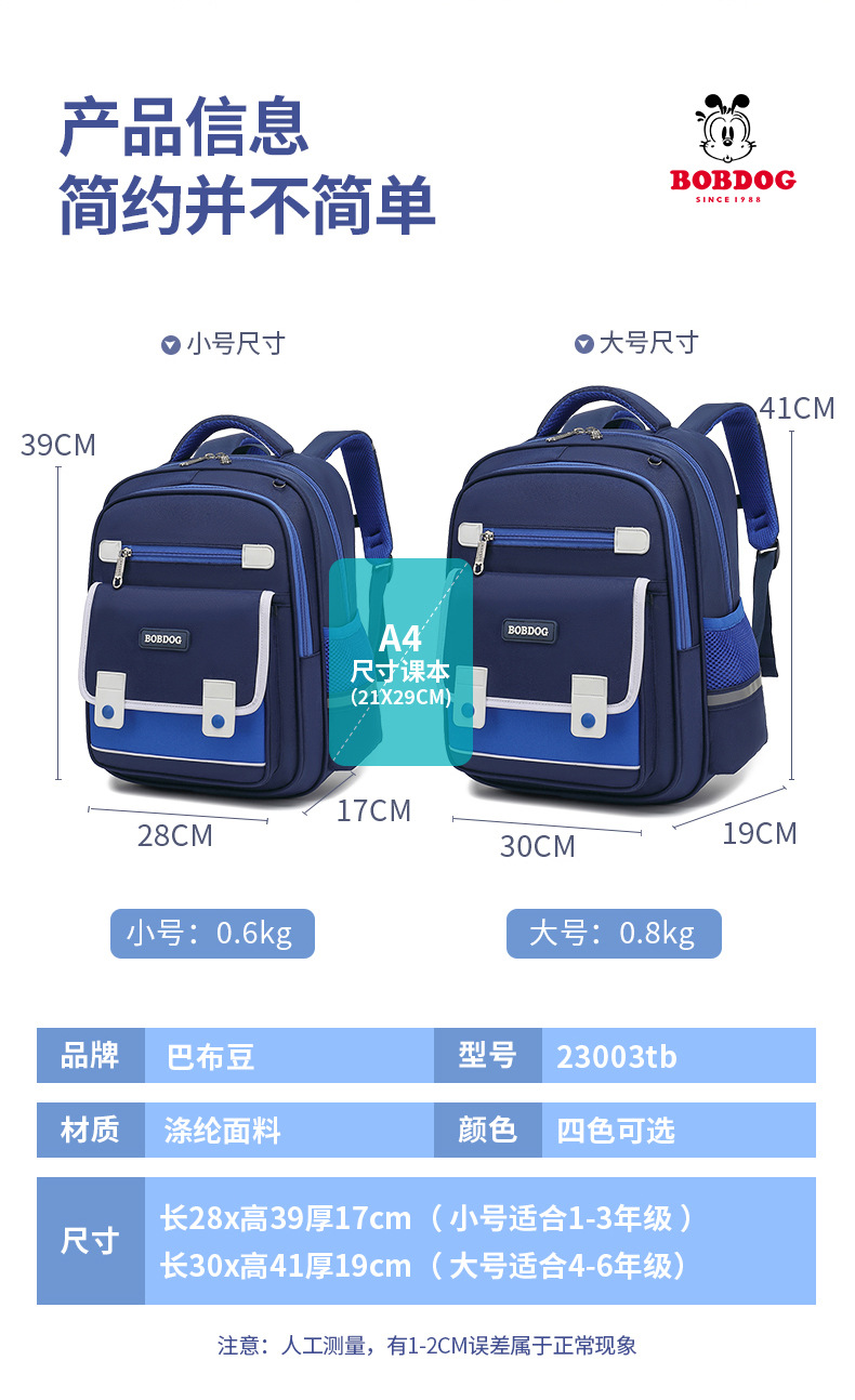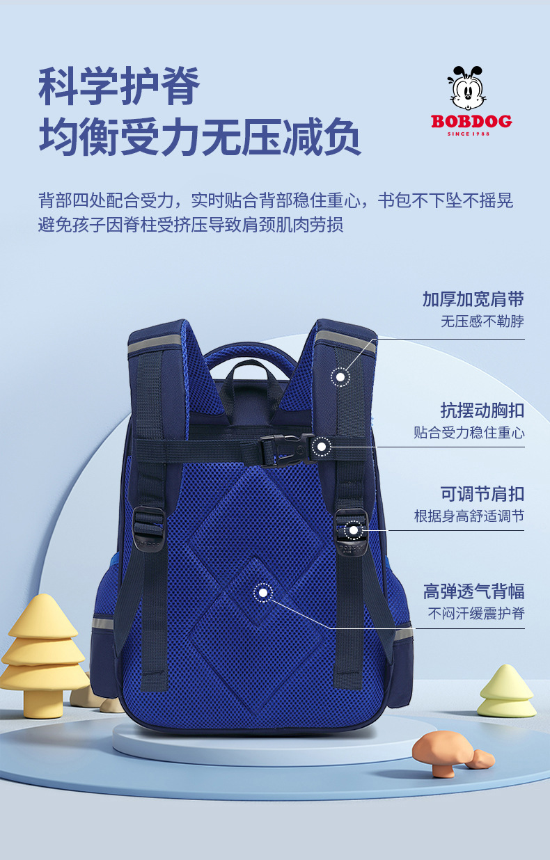 巴布豆小学生书包减负护脊一三到六年级男女生儿童双肩包_HLY