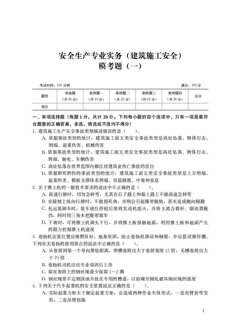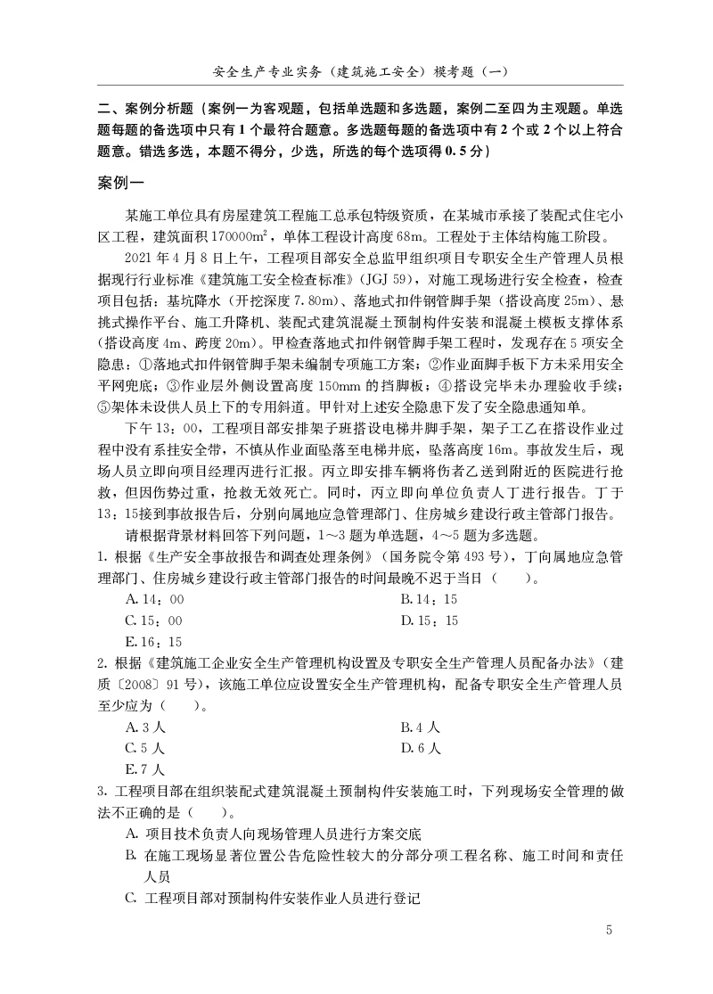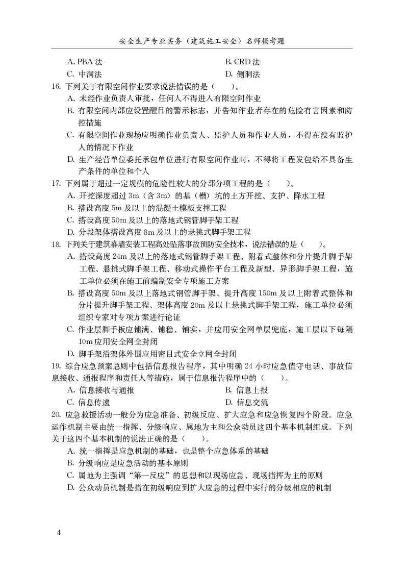 安全生产专业实务(建筑施工安全)全国中级注册安全工程师职业资格考试名师模考题