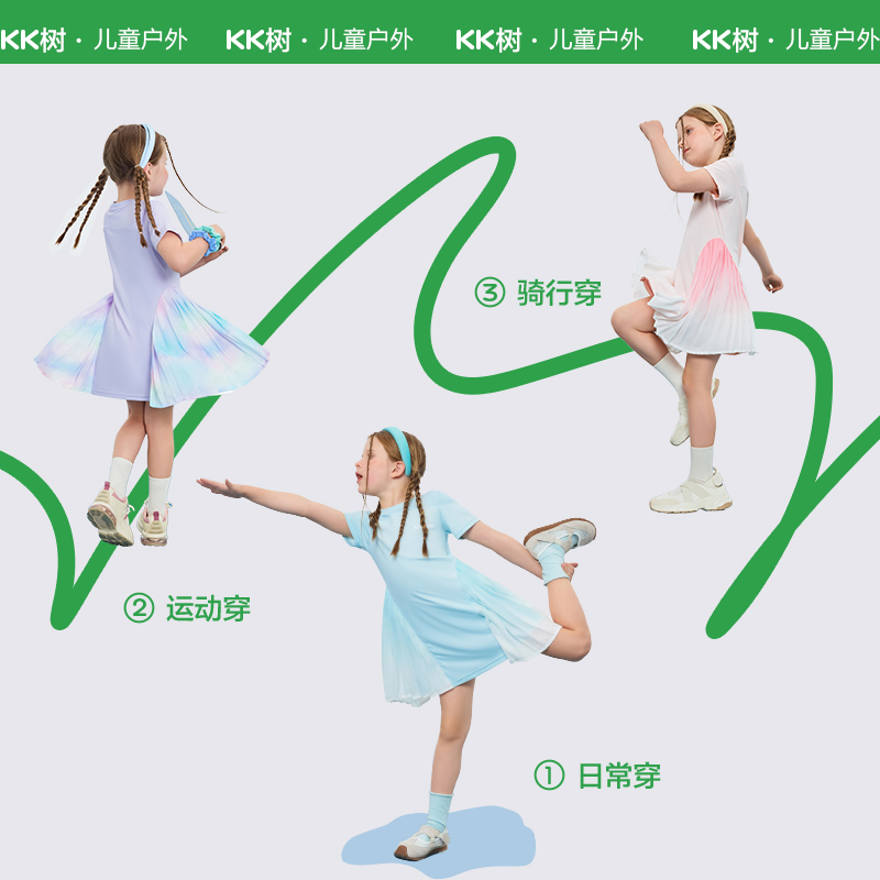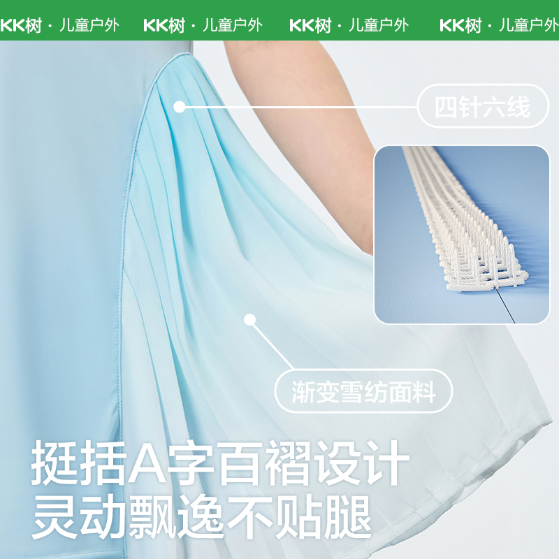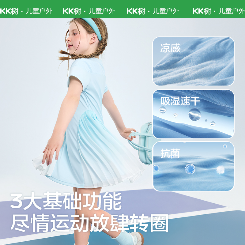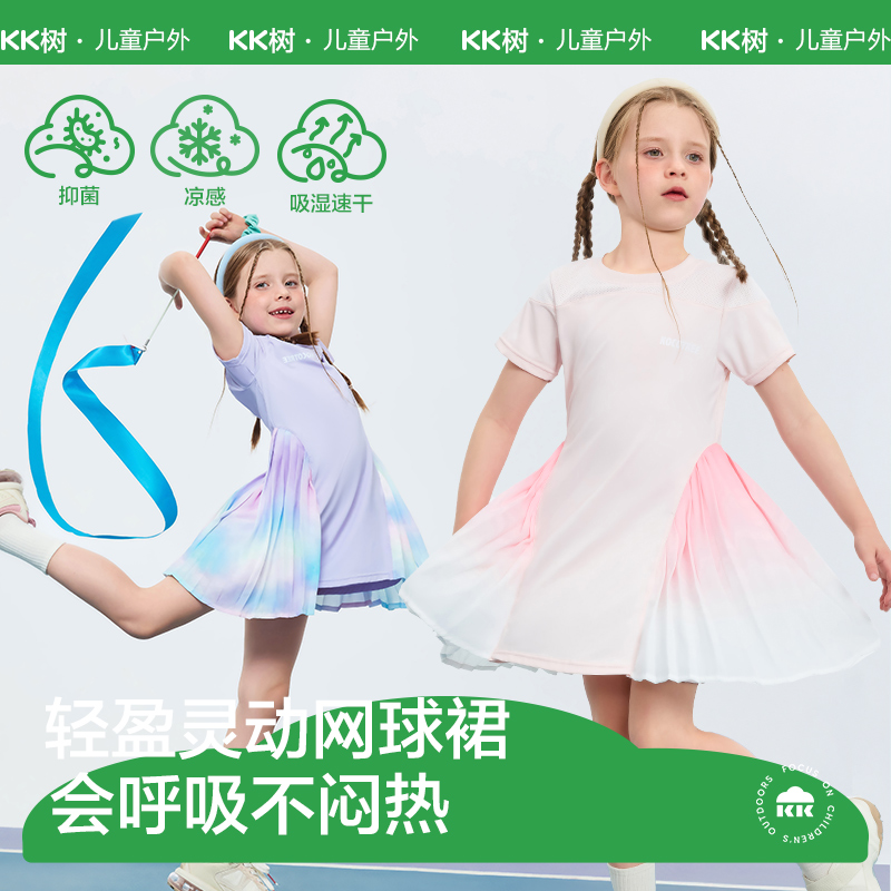 最大做到170!KK树女童运动连衣裙夏季新款凉感透气网球裙短袖中大童百褶裙速干美人鱼运动网球裙
