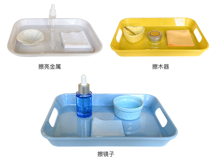 蒙氏生活区蒙台梭利博苑幼儿园教具托盘长方形塑料大中小号多色