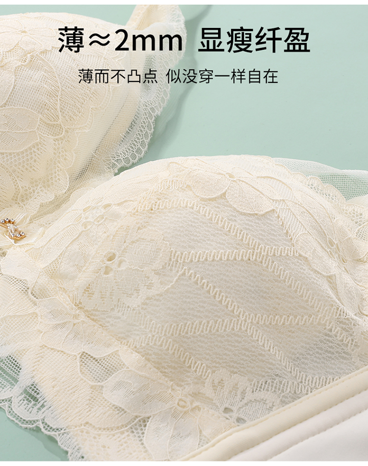 雅黛俪蕾丝内衣女轻薄舒适无钢圈一体杯固定杯聚拢显瘦文胸