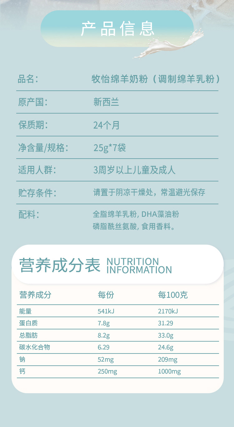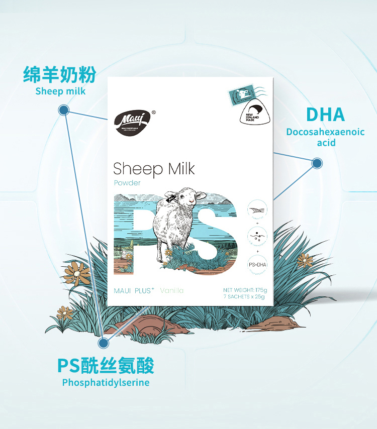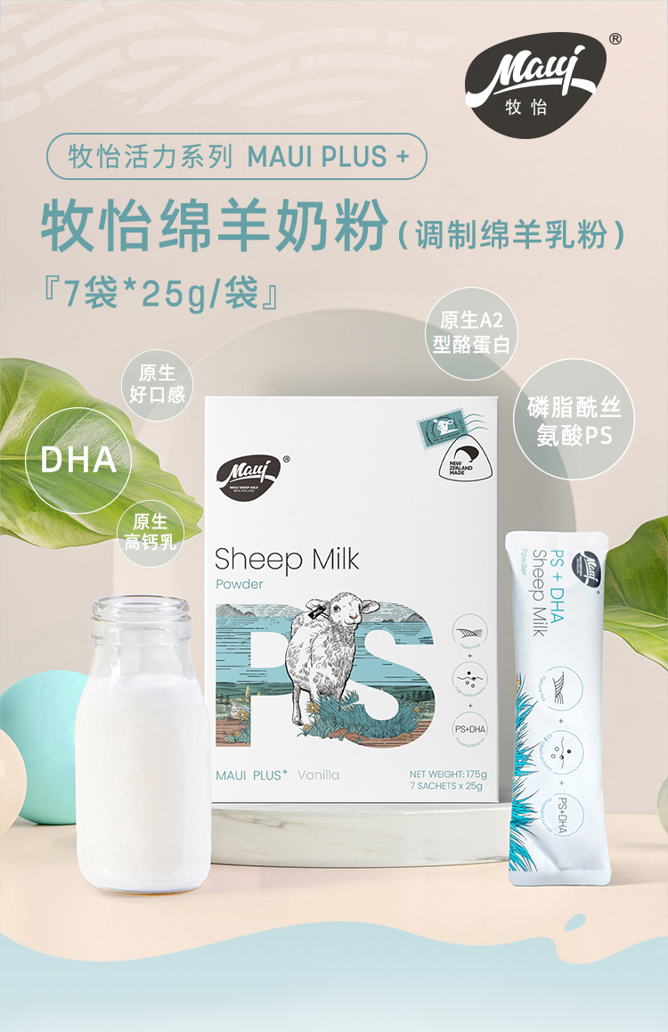 Maui牧怡新西兰原装进口高钙高蛋白PS+DHA绵羊奶粉