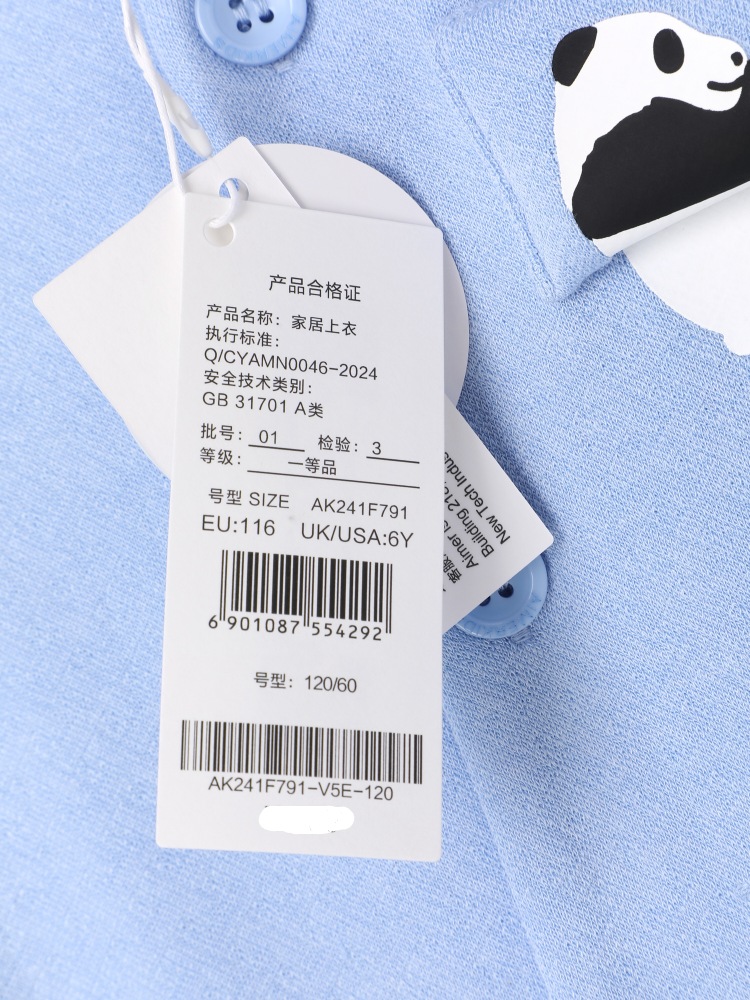【春上新】8楼爱慕儿童Aimer Kids男孩奶皮静谧空间开衫长袖家居AK241F791,吊牌价529元