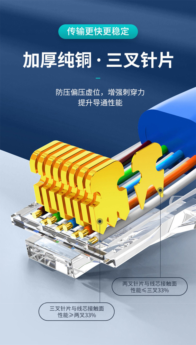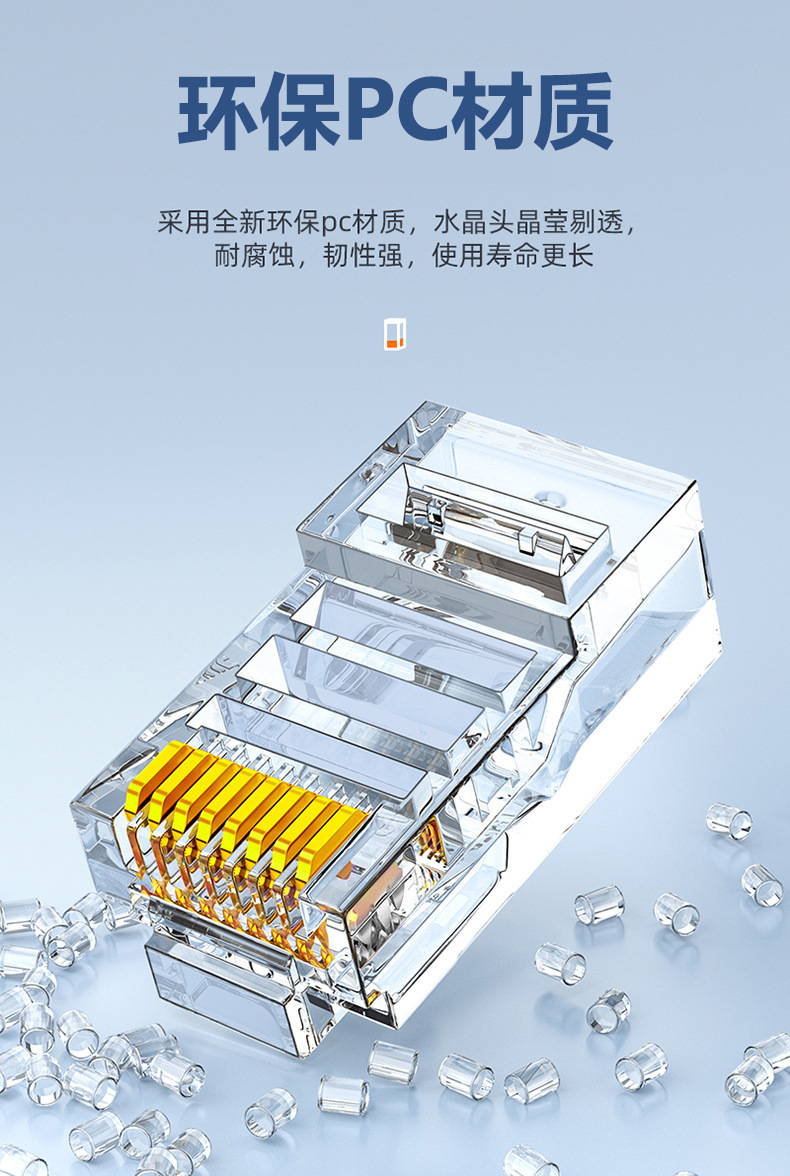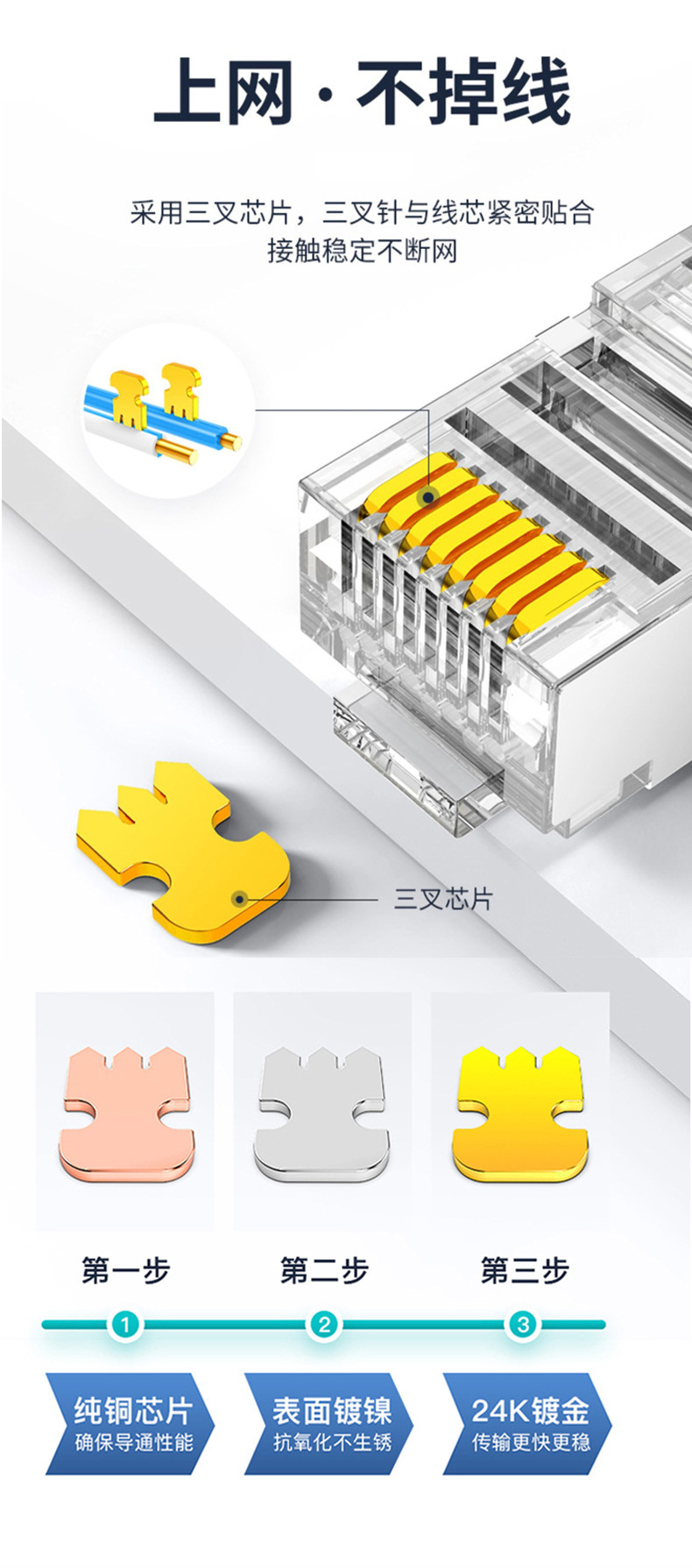 【纯铜镀金】超六类网线水晶头RJ45千兆网络接头水晶头六类屏蔽通孔1个