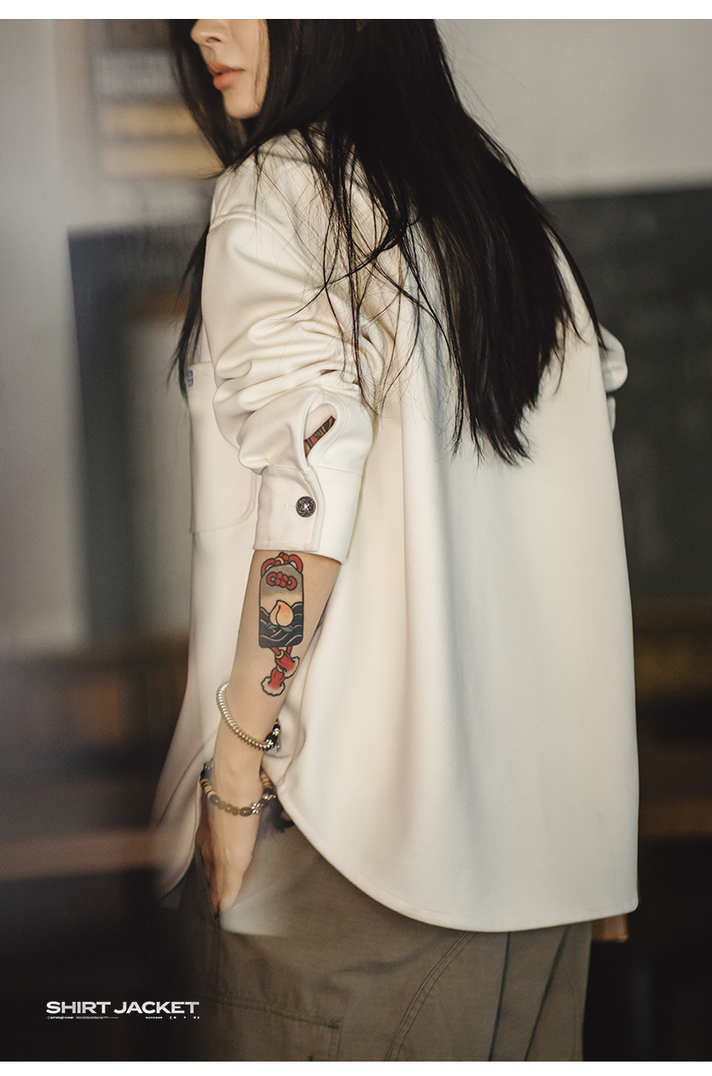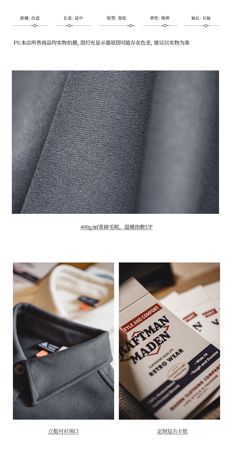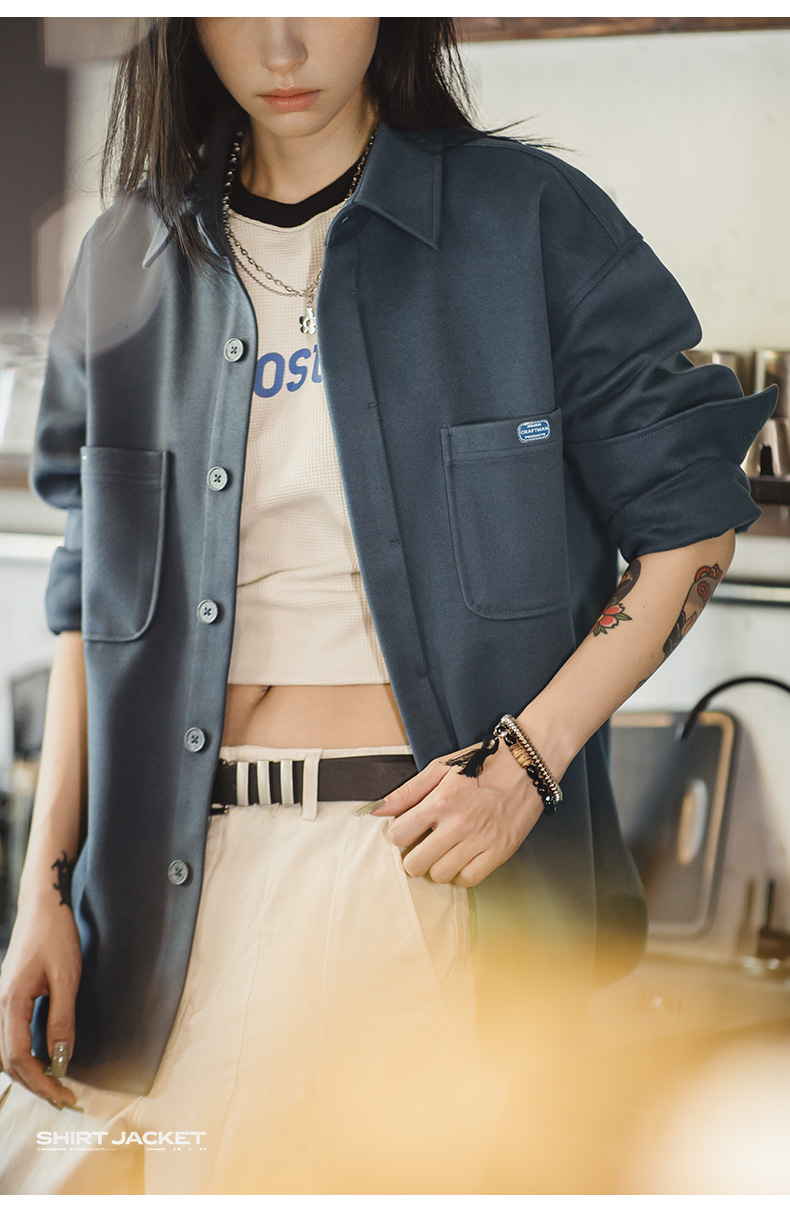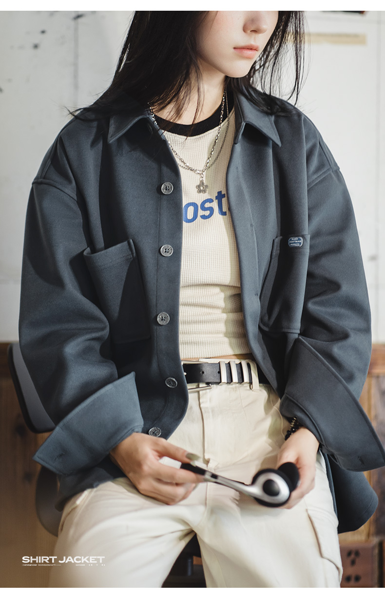 马登女装美式复古毛呢衬衫夹克休闲宽松设计感小众衬衣外套厚秋冬