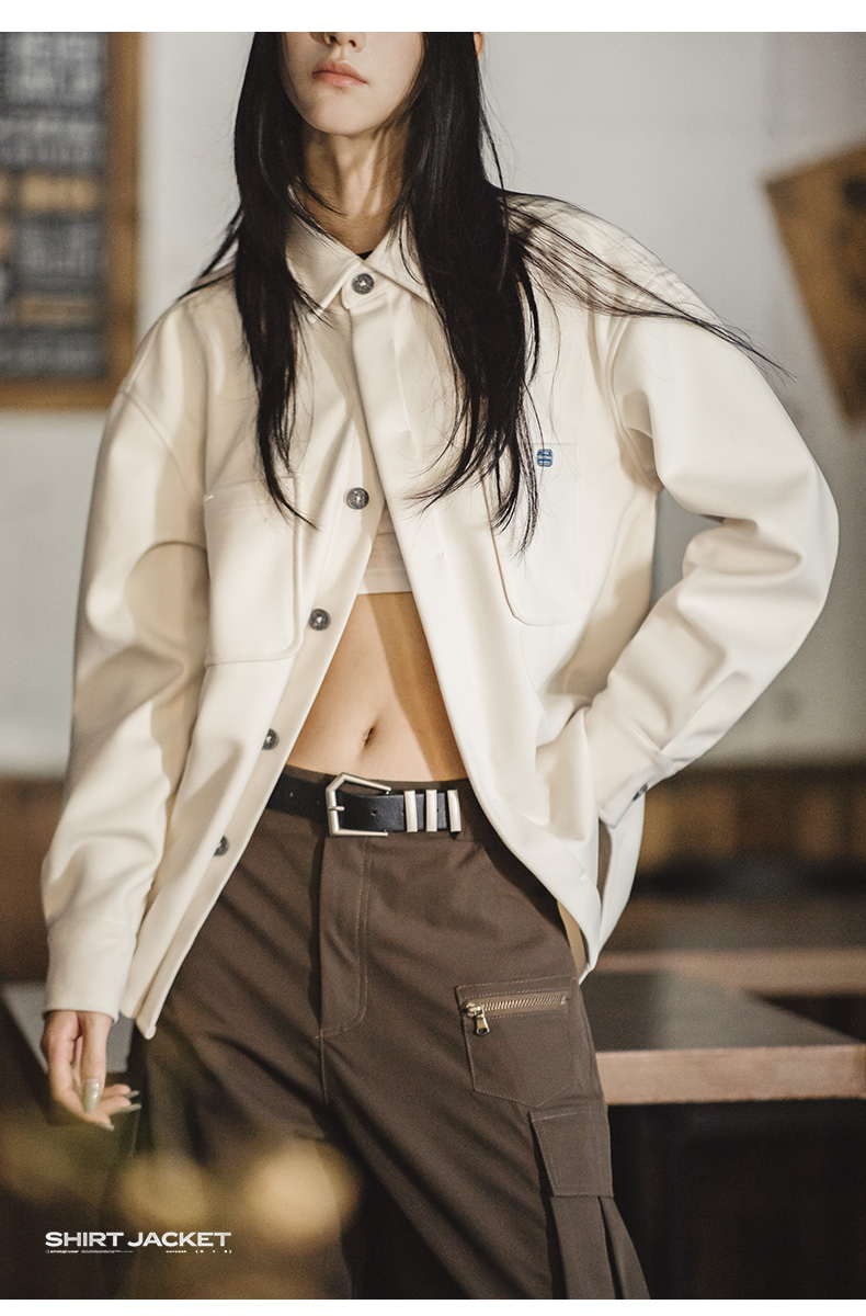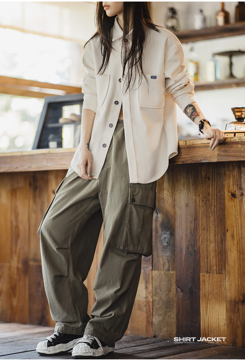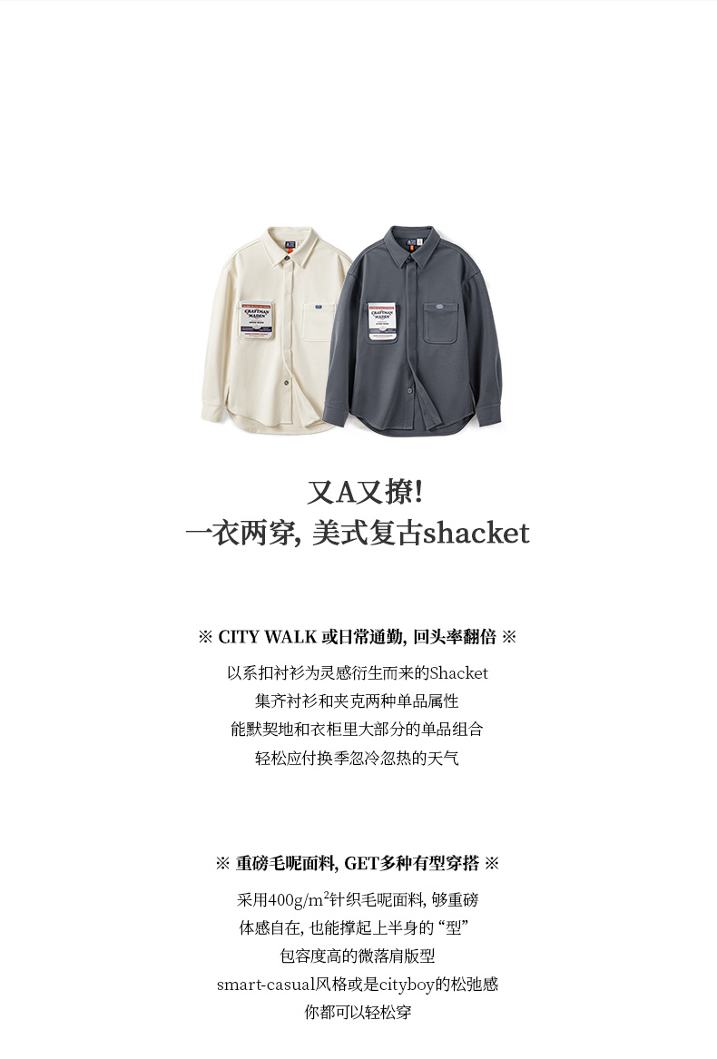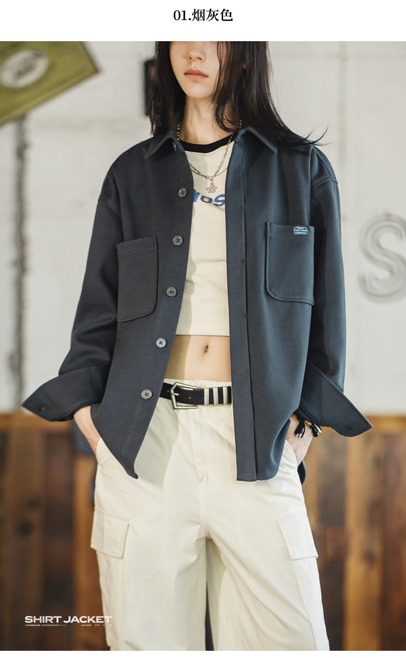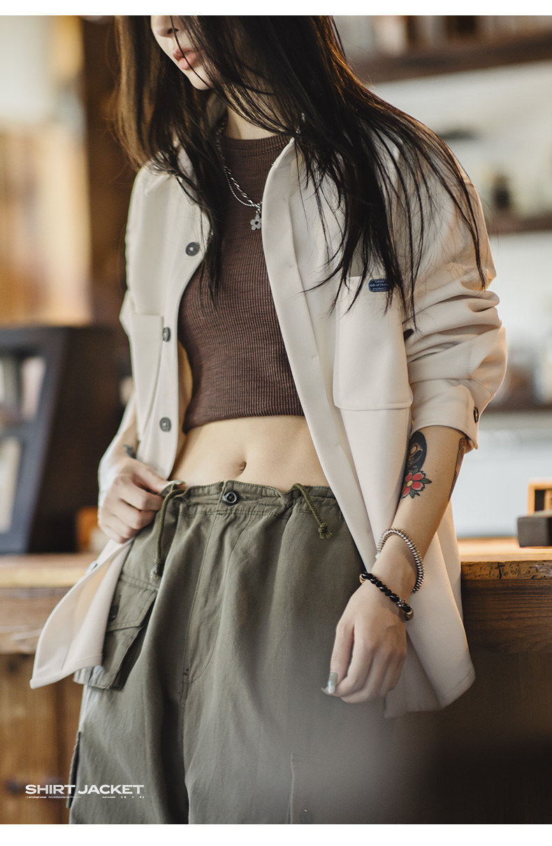 马登女装美式复古毛呢衬衫夹克休闲宽松设计感小众衬衣外套厚秋冬
