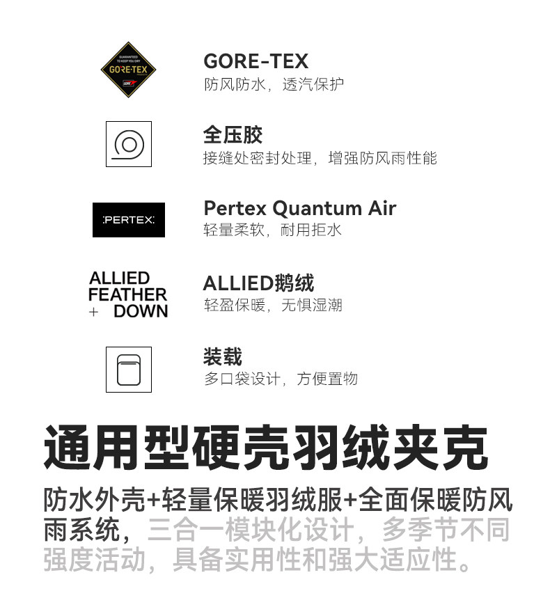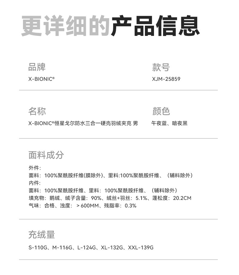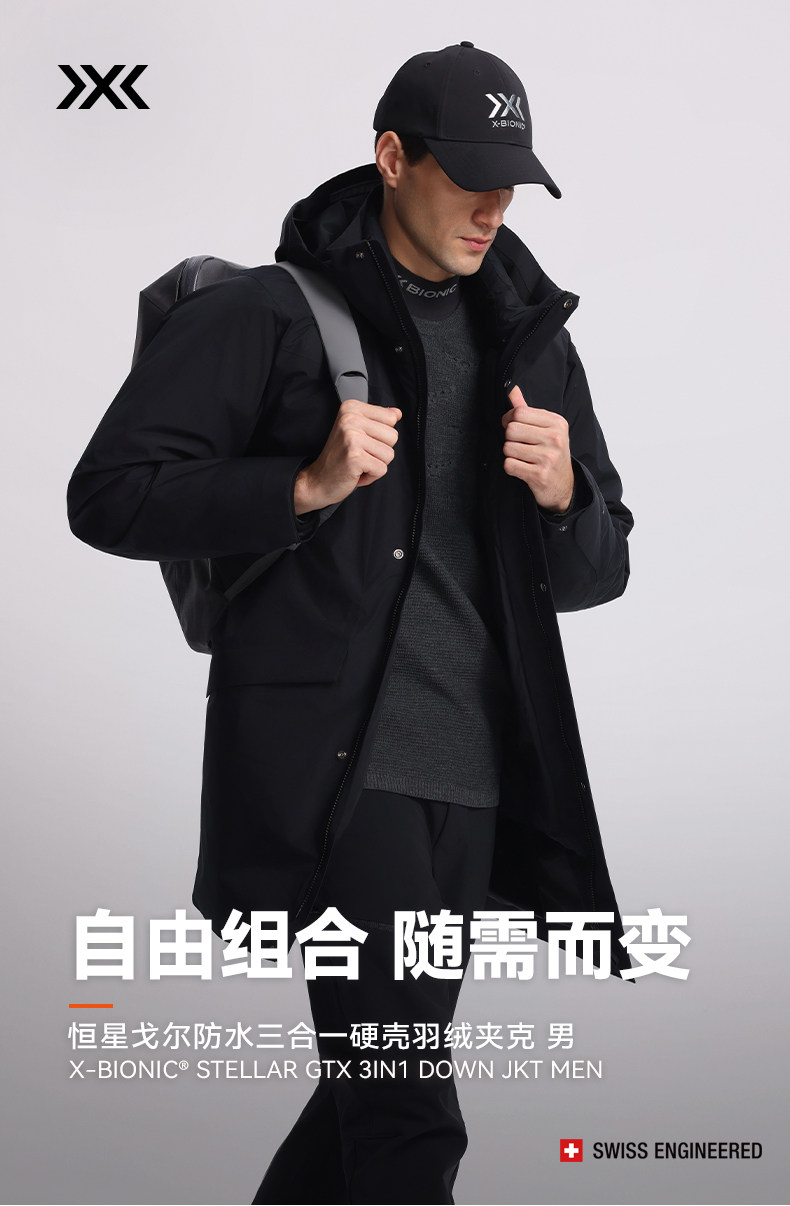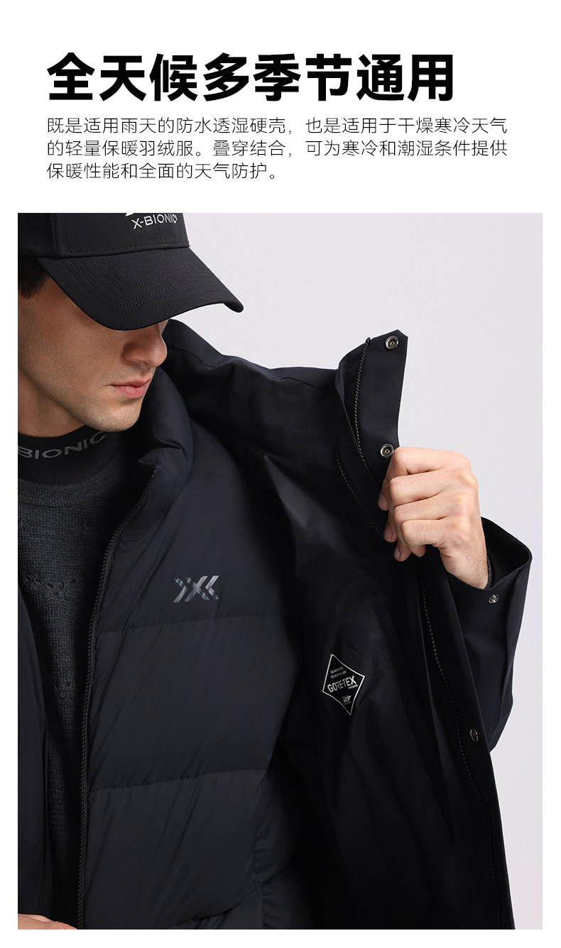 XBIONIC恒星戈尔防水三合一硬壳羽绒夹克男 防风保暖连帽鹅绒服XJM-25859