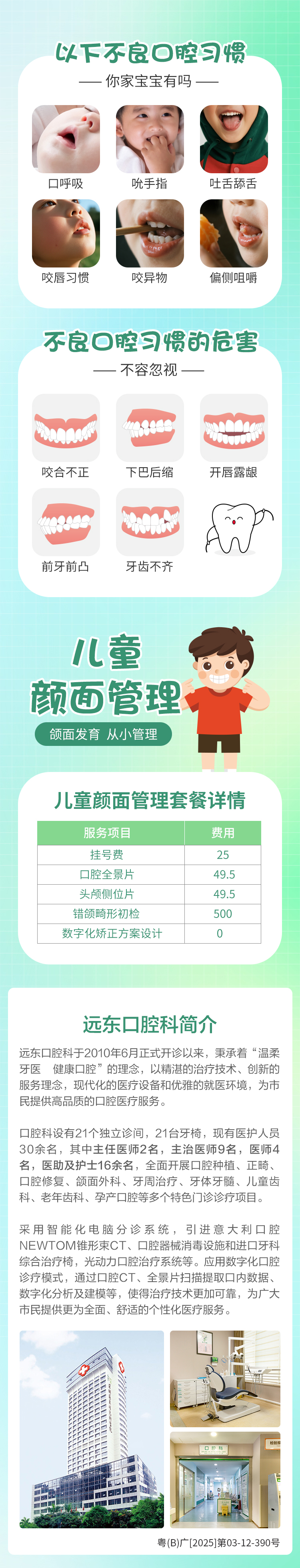 儿童颜面管理-免挂号诊查费-远东罗湖总院-4楼口腔科
