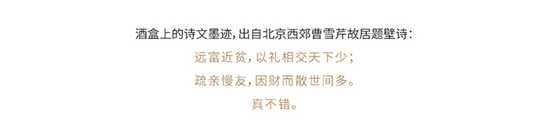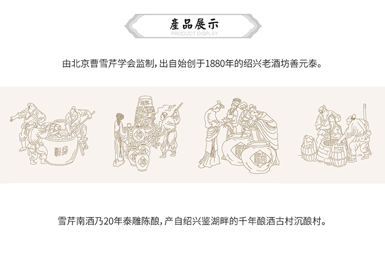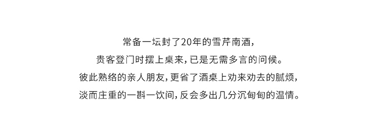 适值曹雪芹纪念馆建馆四十周年,我们特别定制绍兴鉴湖沉酿村古法手工酿制的二十年陈酿雪芹南酒,希望能够藉此传达曹雪芹、《红楼梦》博大精深的文化精髓,为您提供一份古人精雅生活美学的参考。