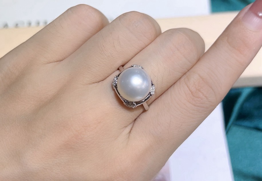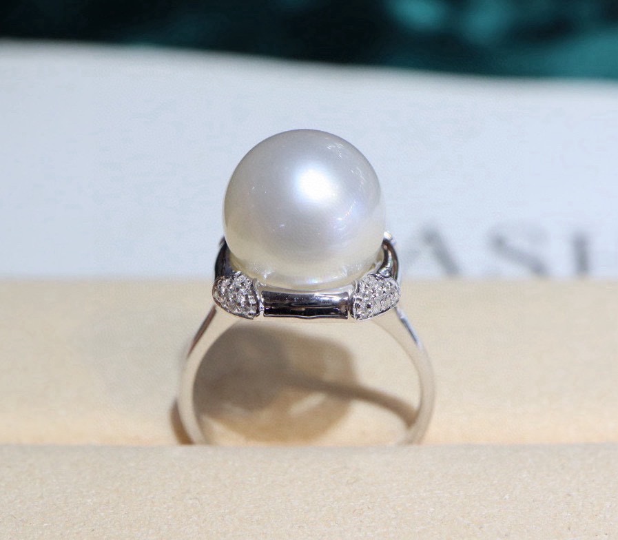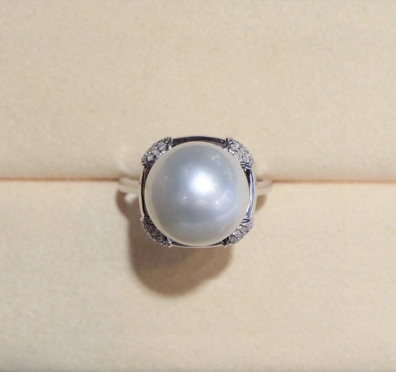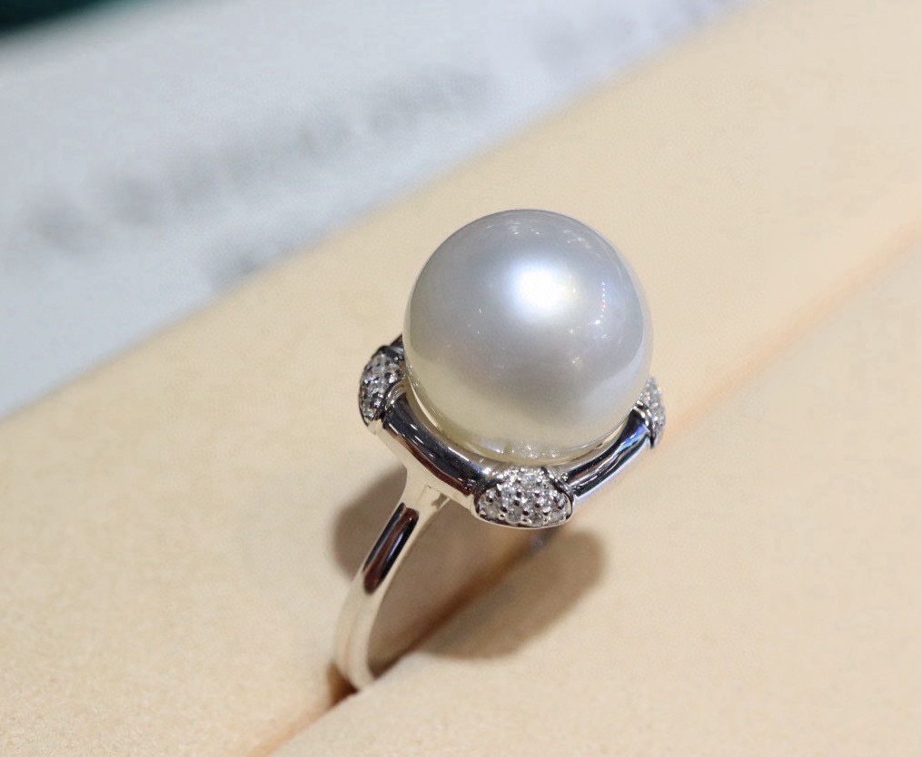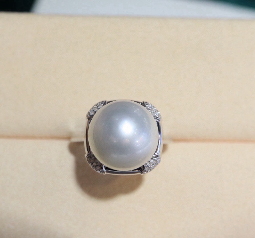 18K金钻石镶嵌,珠子圆珠强光极微瑕,性价比高