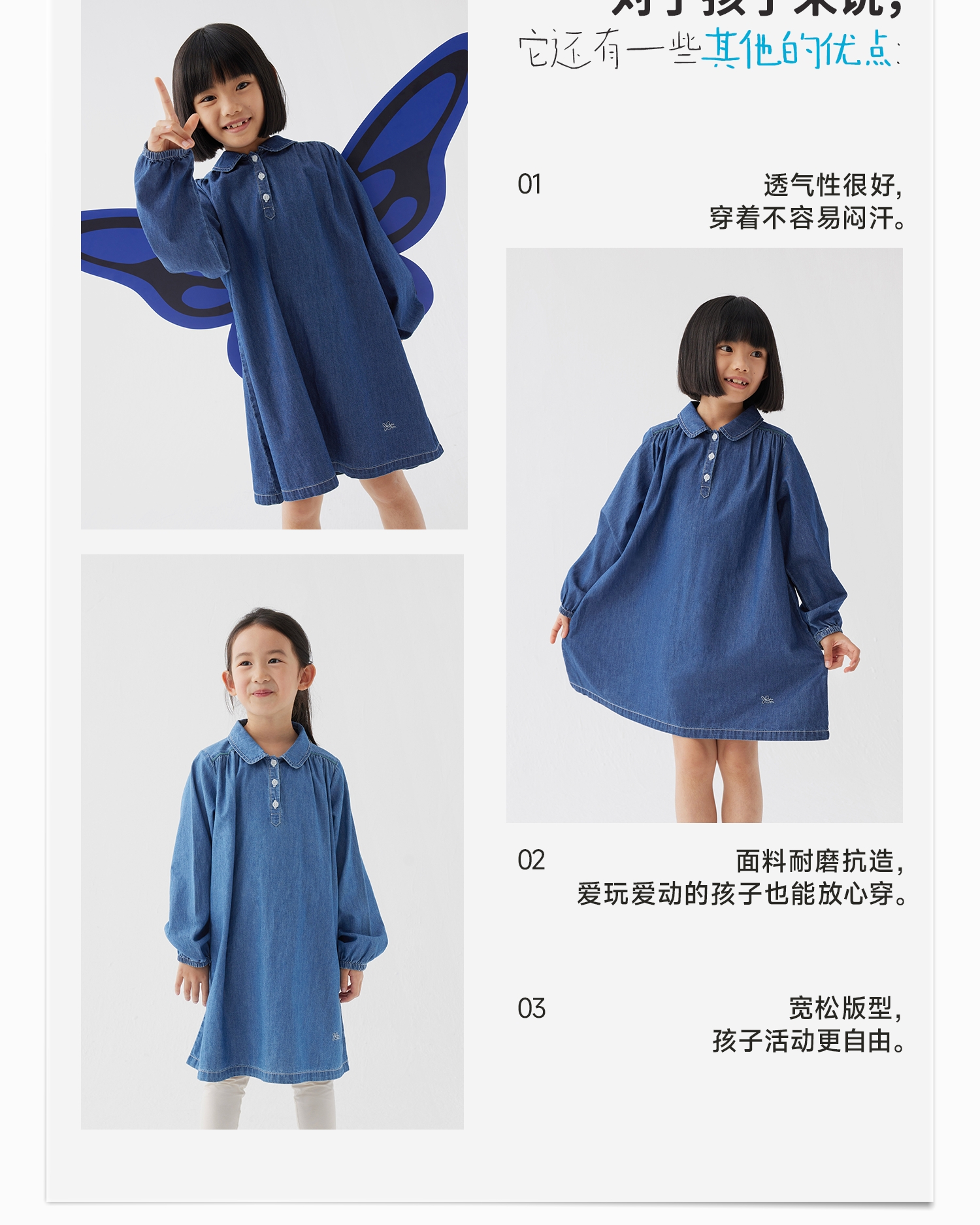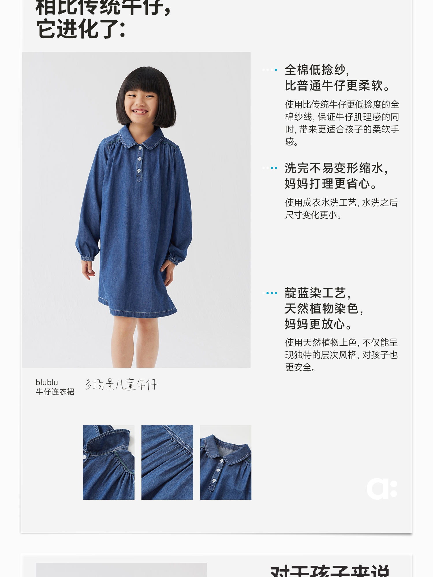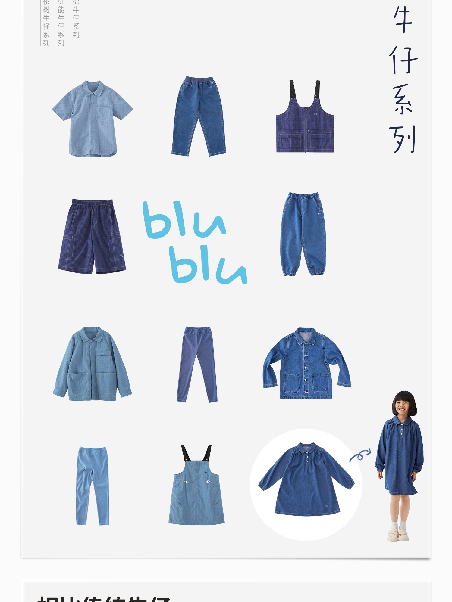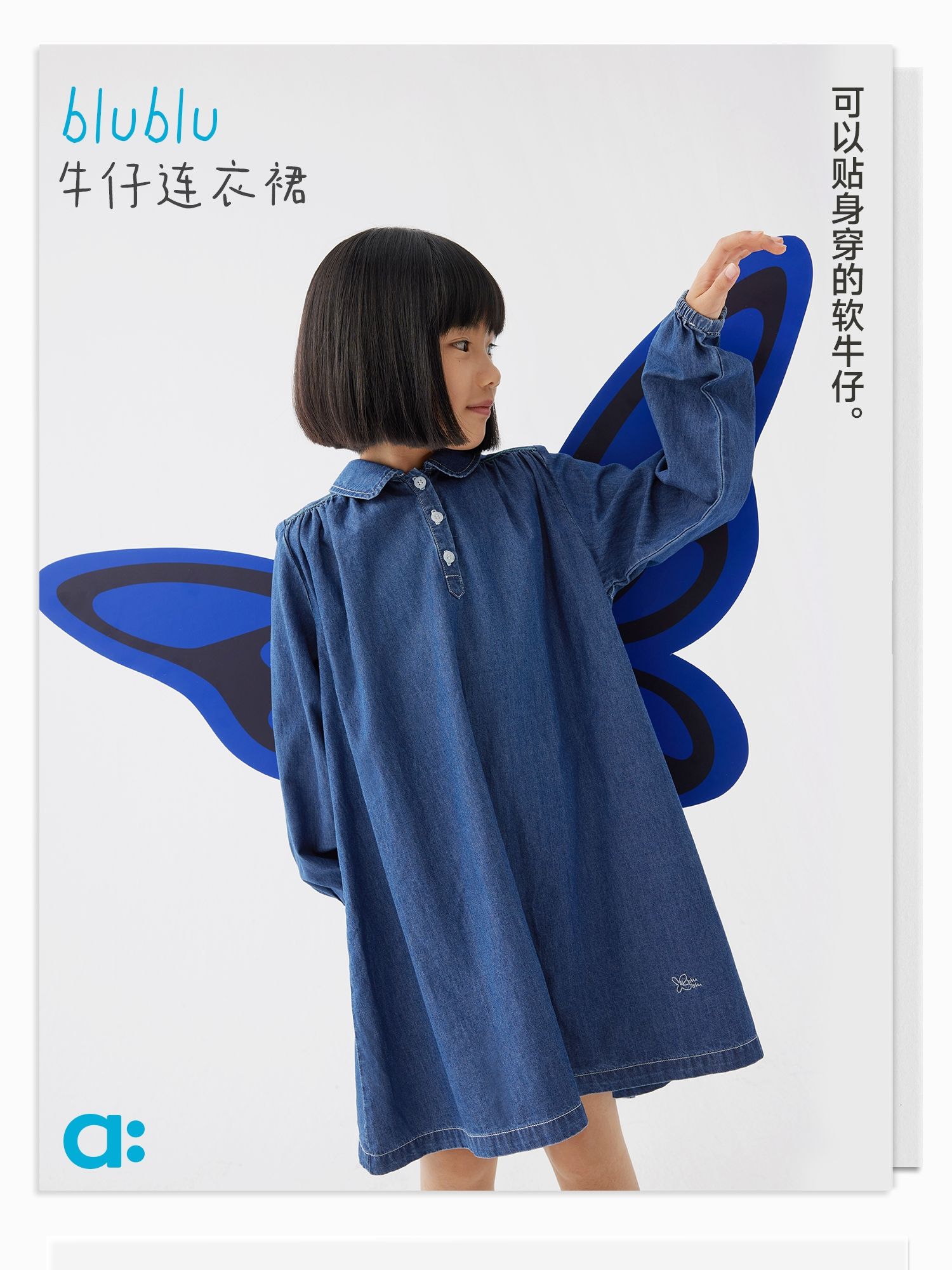 【好友特惠】幼岚舒适轻盈耐磨blublu牛仔连衣裙24春季新款儿童女童连衣裙ZY