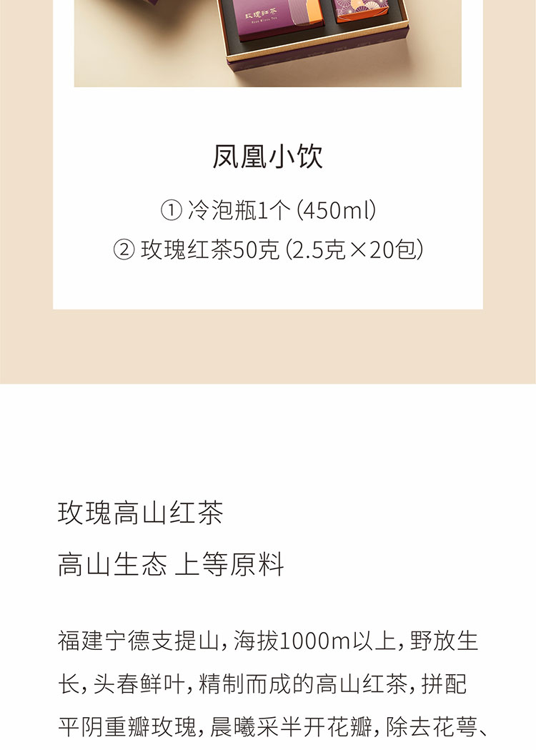 【凤凰小饮】支提山高山花香红茶 平阴重瓣玫瑰 拼配玫瑰红茶 食品级硅胶高硼硅冷泡瓶 新式冷萃茶
