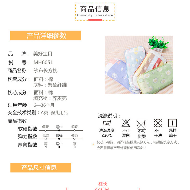 【婴儿枕】*美好宝贝 婴儿新生儿防扁头长方形纱布婴儿枕