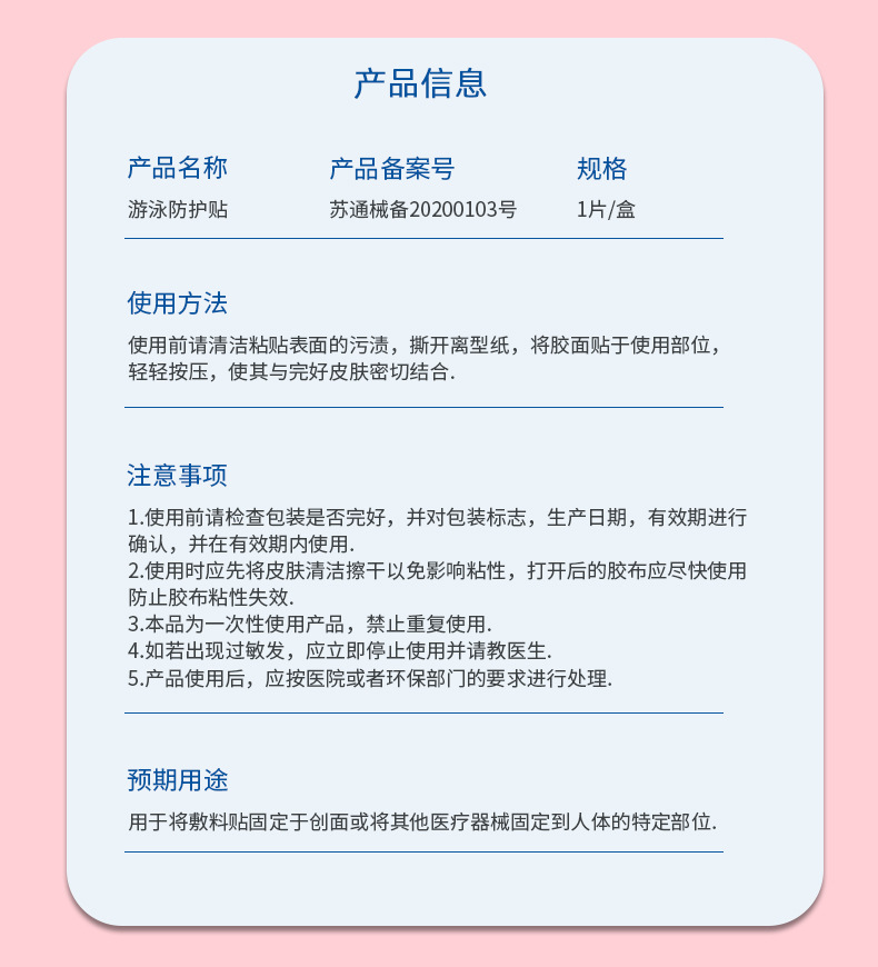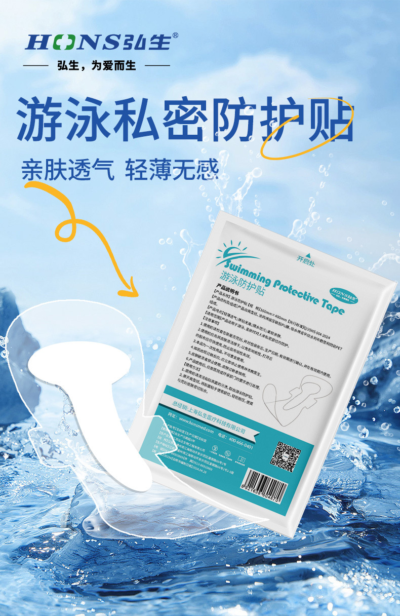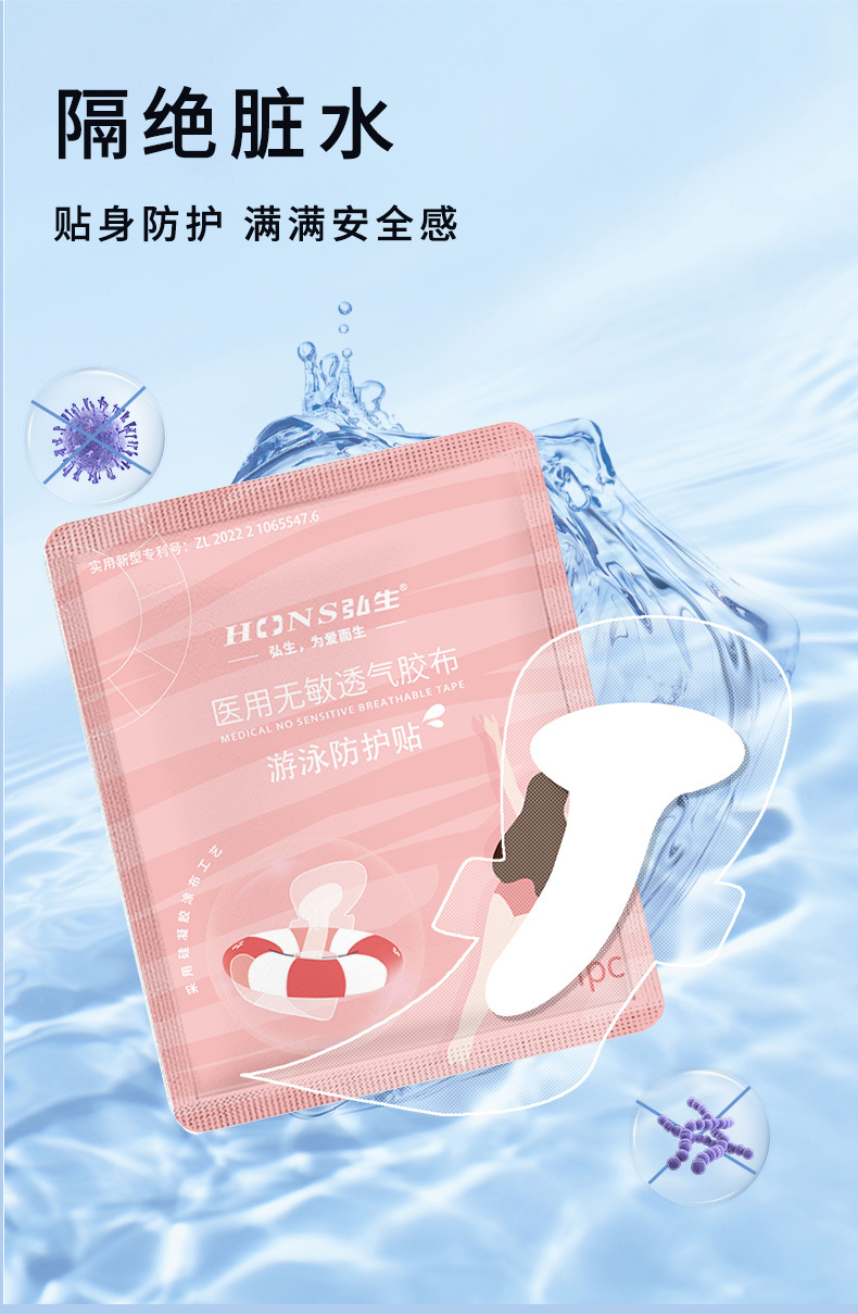 上海弘生游泳防护贴私密贴1片/袋 60-160斤均适 泡防水卫生巾保护贴漂流泳池防感染