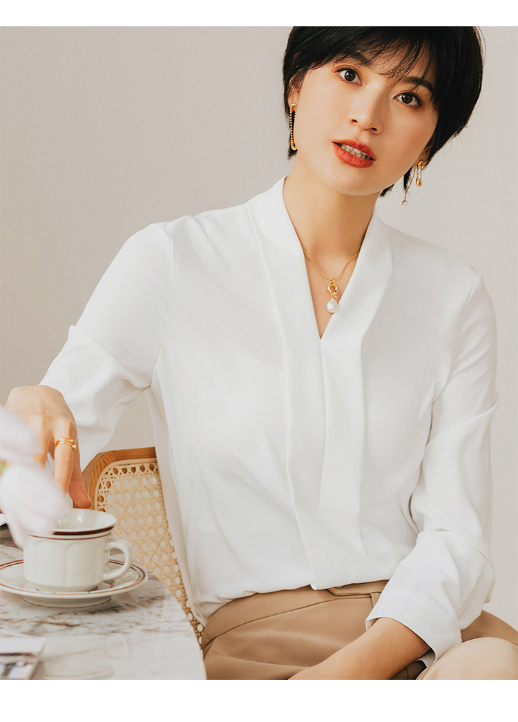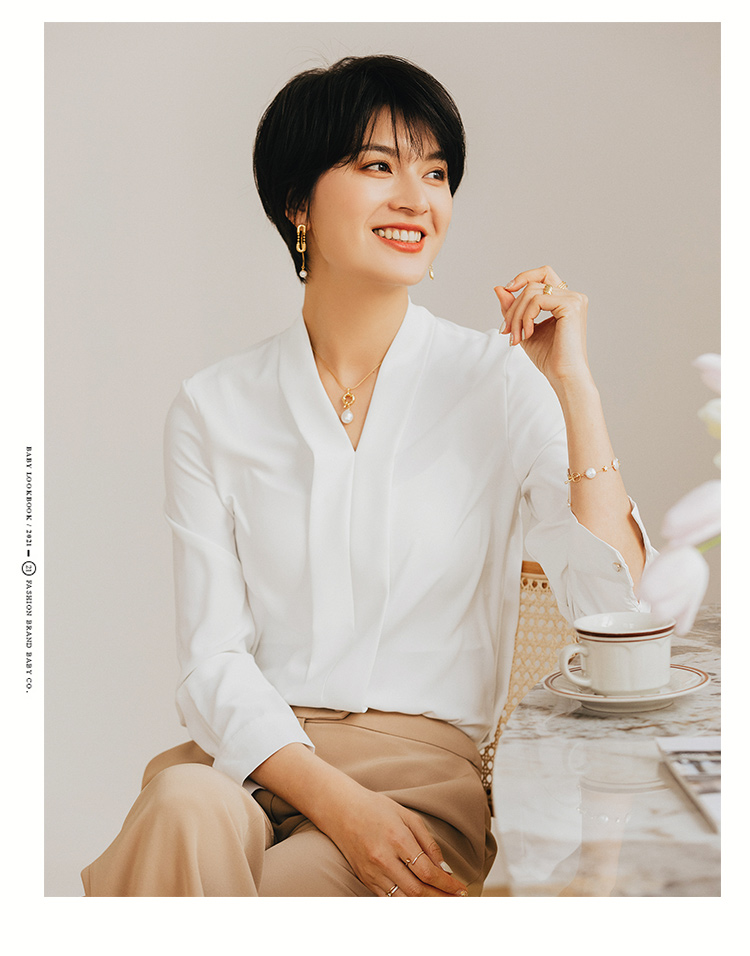 气质白色长袖衬衫女春季时尚百搭西装职业装正装衬衣工作服