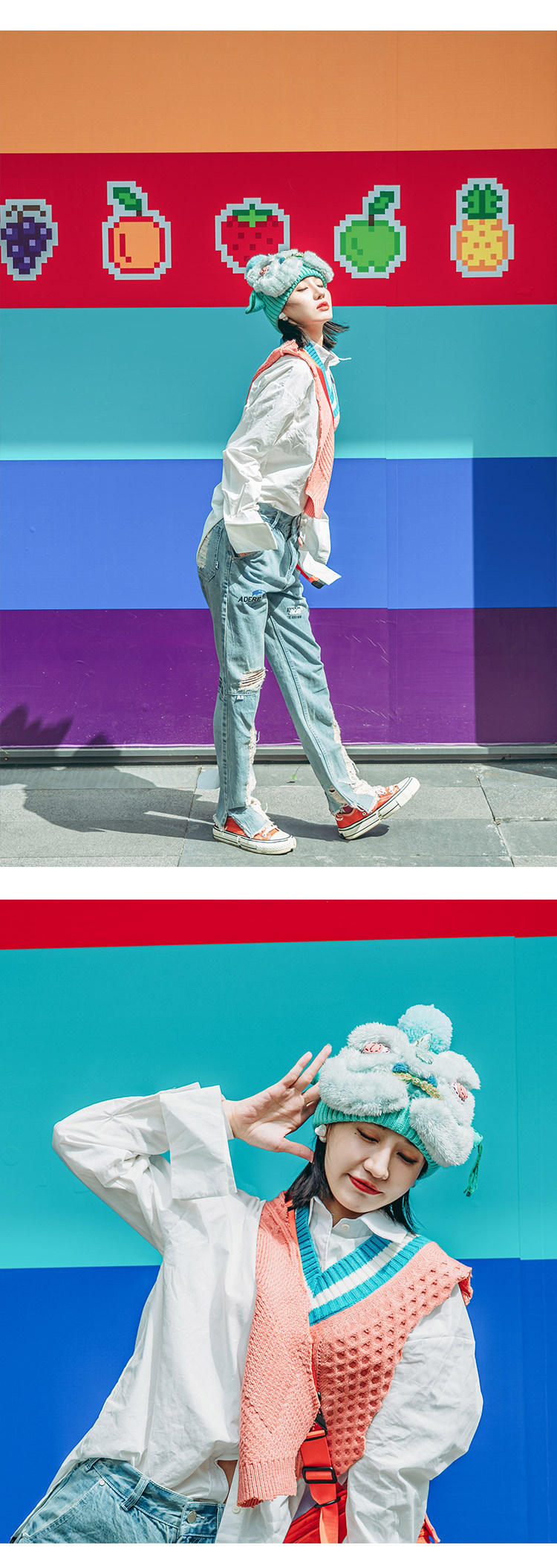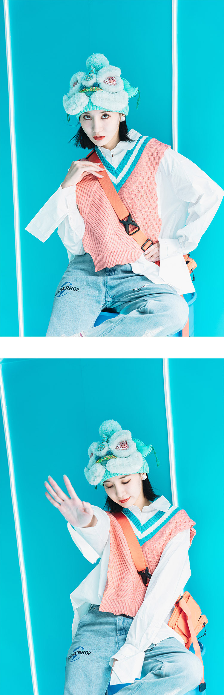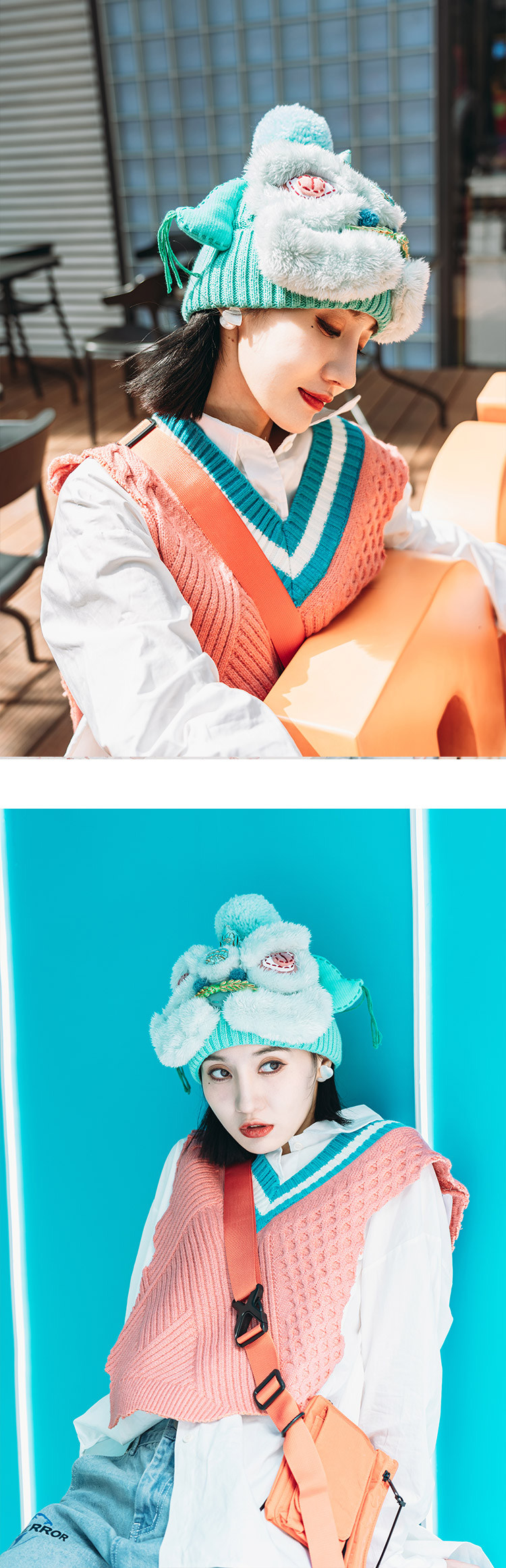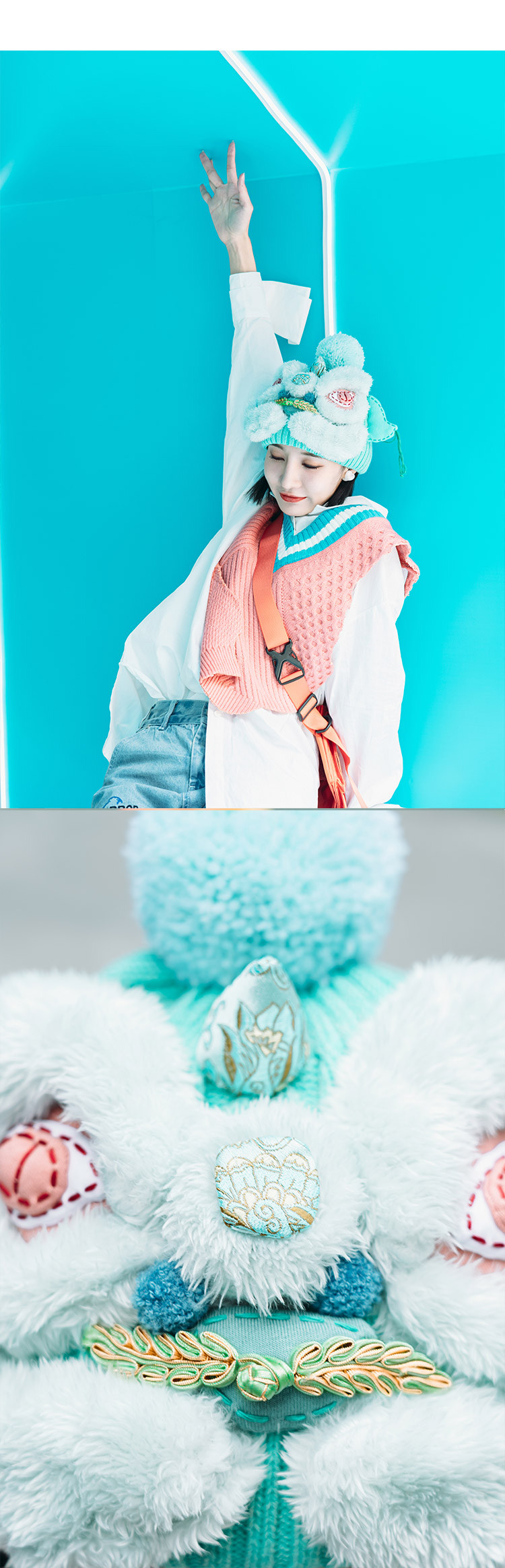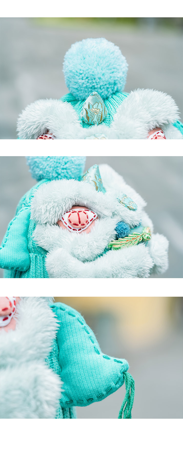 【2.10停发】芽小七原创手工国潮青色醒狮毛线帽子女秋冬百搭毛织保暖运动帽