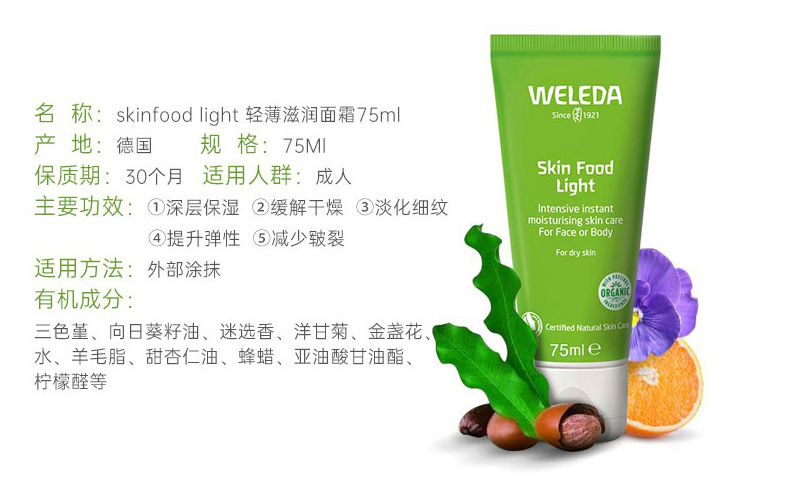 [屁侠推荐]WELEDA维蕾德 super food轻薄款 多效XIU护 保湿霜 75ml