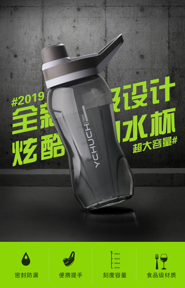 初臣大容量太空杯水杯塑料男女学生便携随手杯子ins简约户外运动