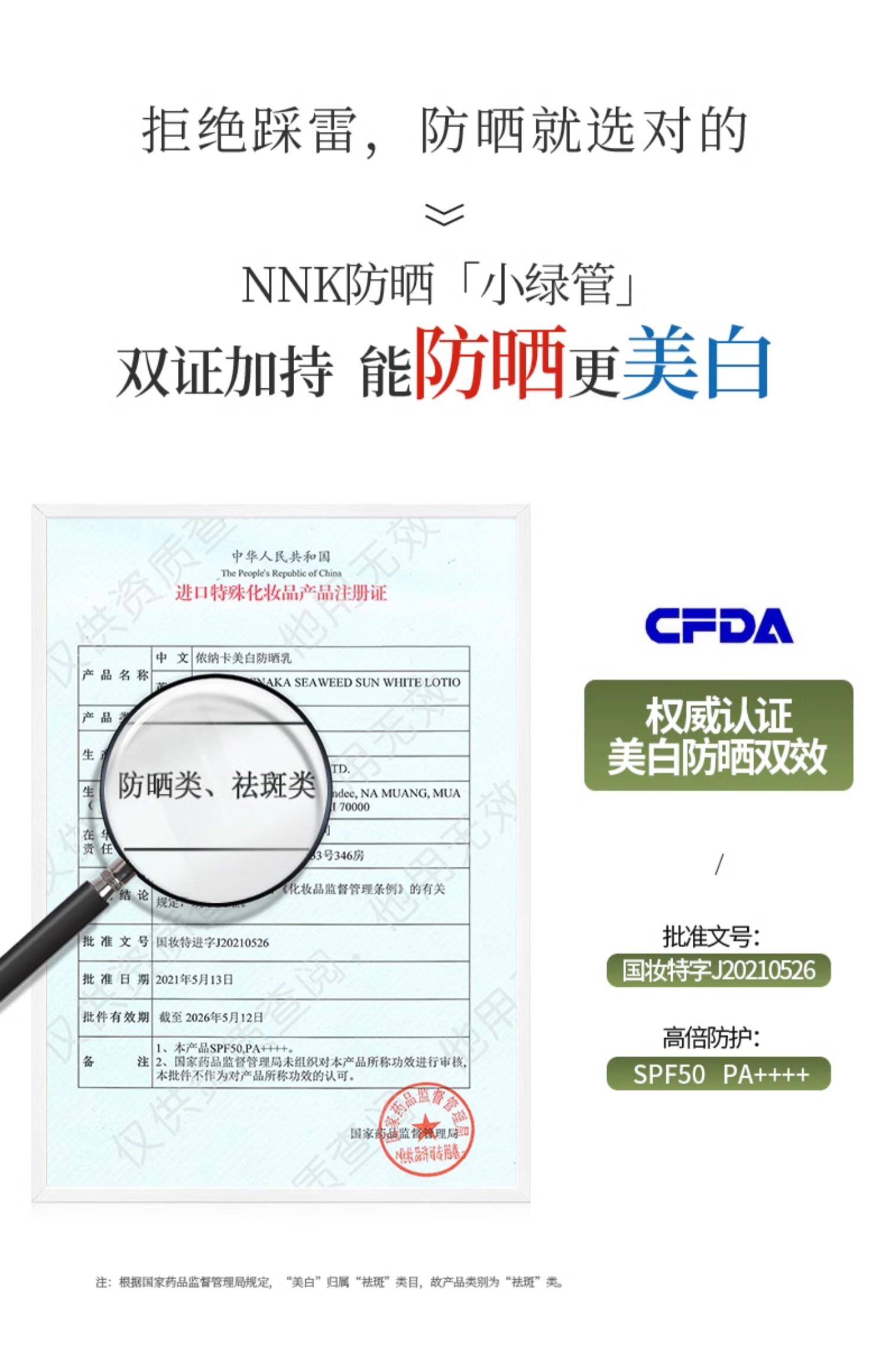 涂在脸上会有点提亮的作用,但不会假白,在补防晒的同时等于在补妆了。主要成分是深海藻精华,通过海藻将紫外线反射出去,达到防晒的效果,特别是对于化学防晒易过敏的宝宝来说,泰国NNK海藻防晒霜是一个不错的选择。