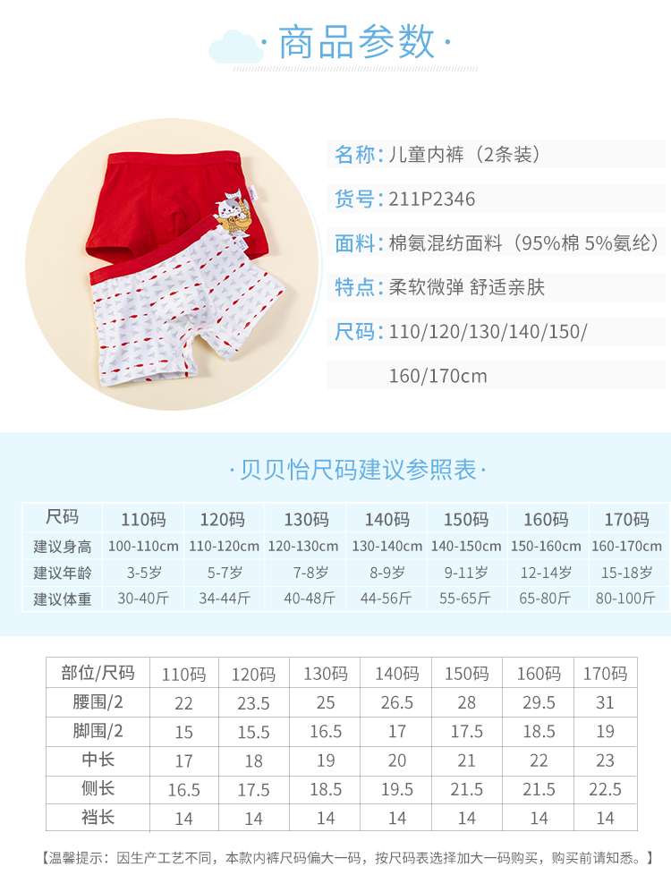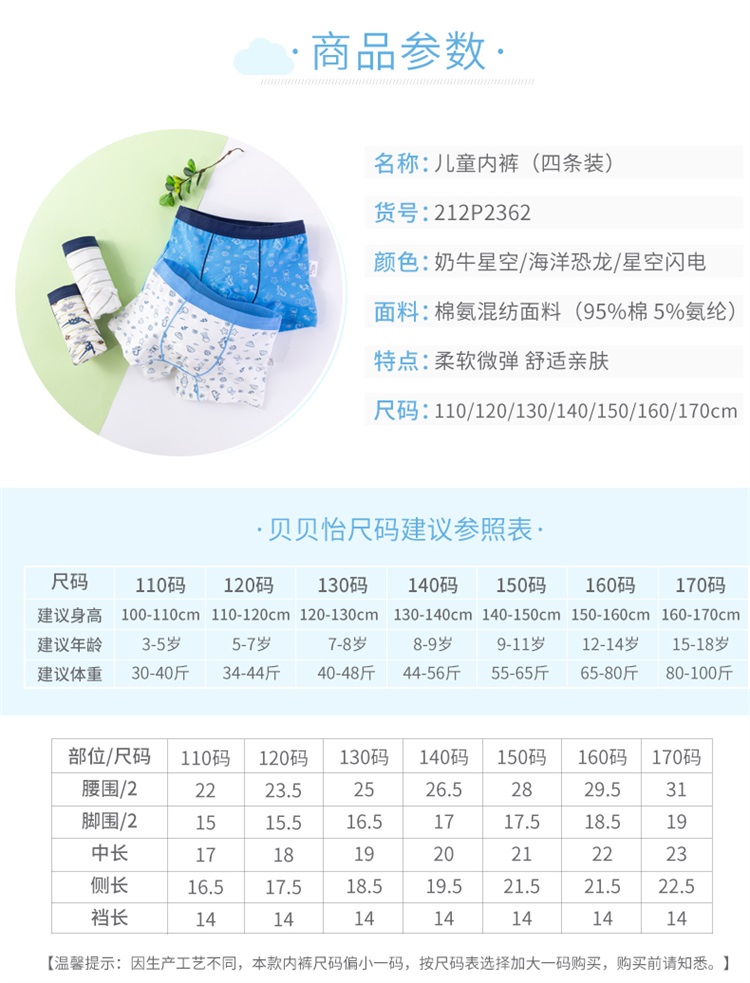 贝贝怡儿童内裤男童短裤中小童宝宝内裤平角内裤4条装男童
