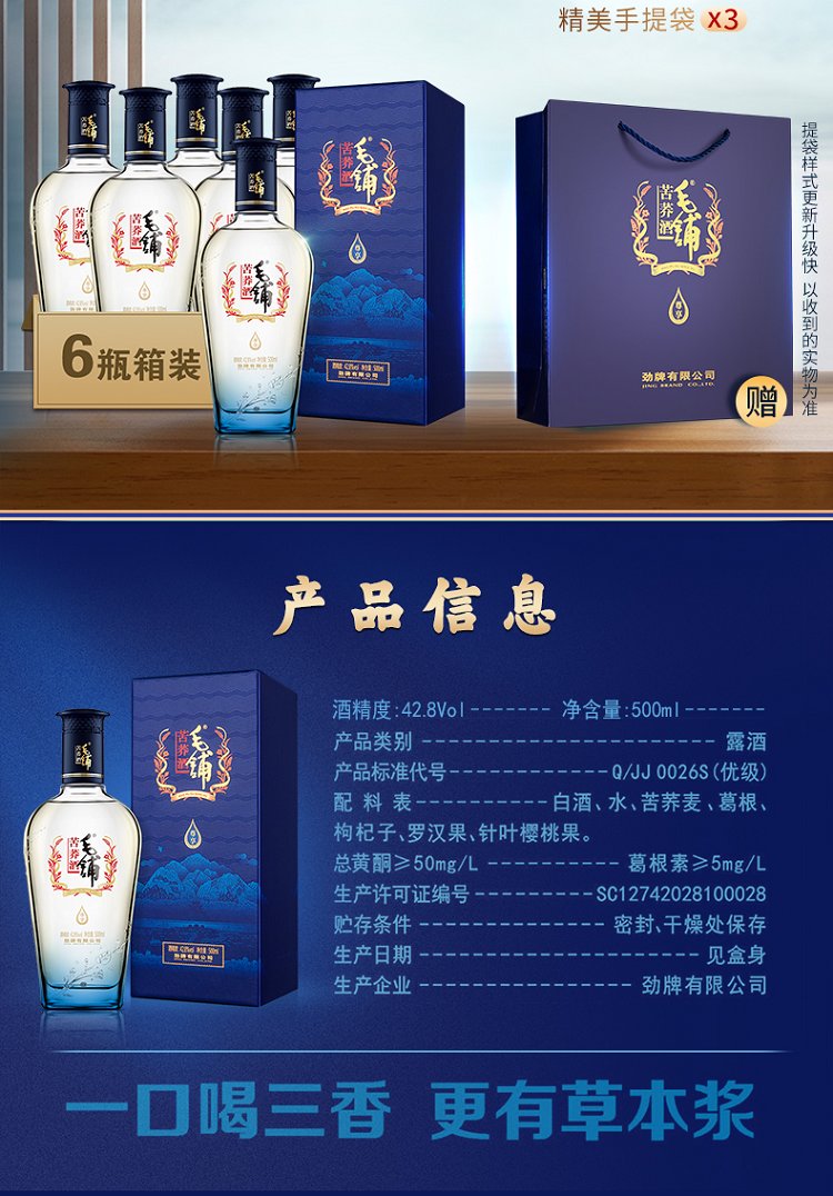 毛铺尊享 42.8度 500ml 荞香高度数酒 送礼佳品