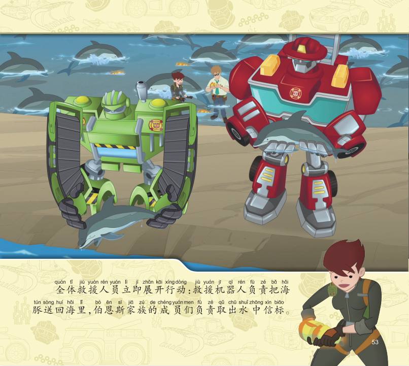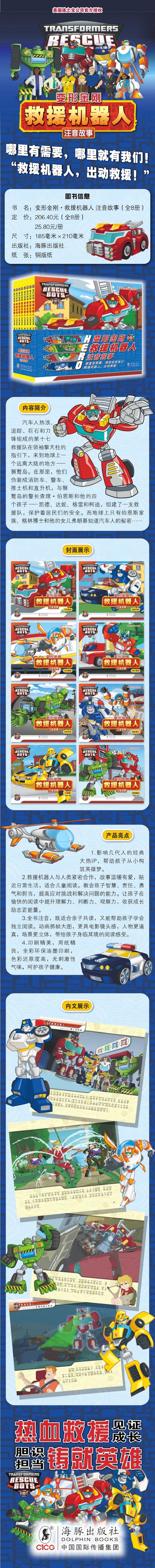《变形金刚救援机器人》系列更适合低龄儿童阅读,以汽车人与人类救援队为主角、日常生活为舞台,情节跌宕却不失温度。本册讲述了汽车人热浪、追踪、巨石和刀锋与狮鹫岛的警长查理伯恩斯和他的四个孩子组成了一支救援队。众人联手抓捕出现故障后在镇上兴风作浪的电子种植机;伍德罗叔叔为警长代班,解救搁浅的海豚;大黄蜂与救援队联手,化解狮鹫岛沉没危机。本书情节跌宕起伏、扣人心弦,画面明快、生动,全文注音,能带给读者愉快的阅读感受,在满足儿童好奇心的同时,还有助于培养儿童正直勇敢、团结友善、不畏困难等积极向上的精神品格,认识到责任与担当的重要性。