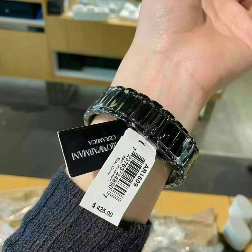 🇺🇸998元包邮!Armani阿玛尼男士石英手表,AR1509,火到爆的金属黑拼黑陶瓷系列,黑色表盘搭配金色指针,深受男神们的钟爱~表盘43mm,防水50米。原价400多美金,国内4000多
