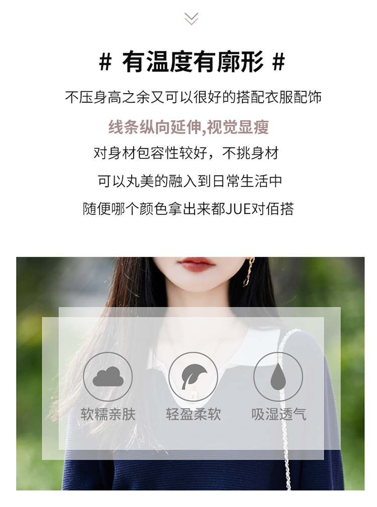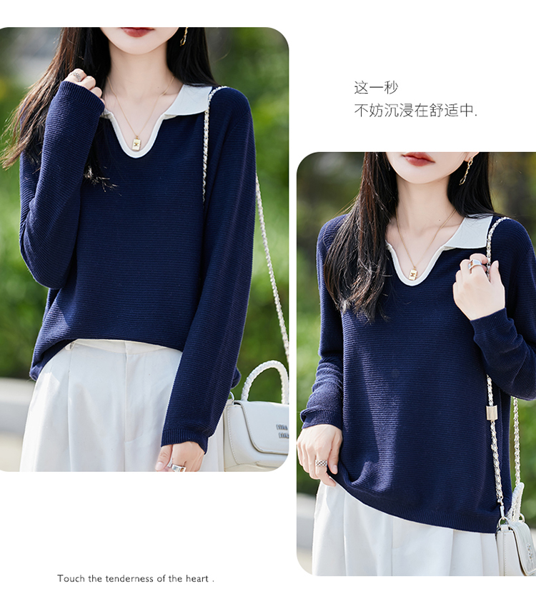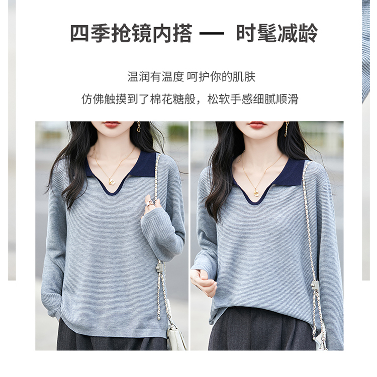 奥伊米初秋女撞色翻领羊毛薄款毛衣拼色长袖针织衫JR784 商品图2