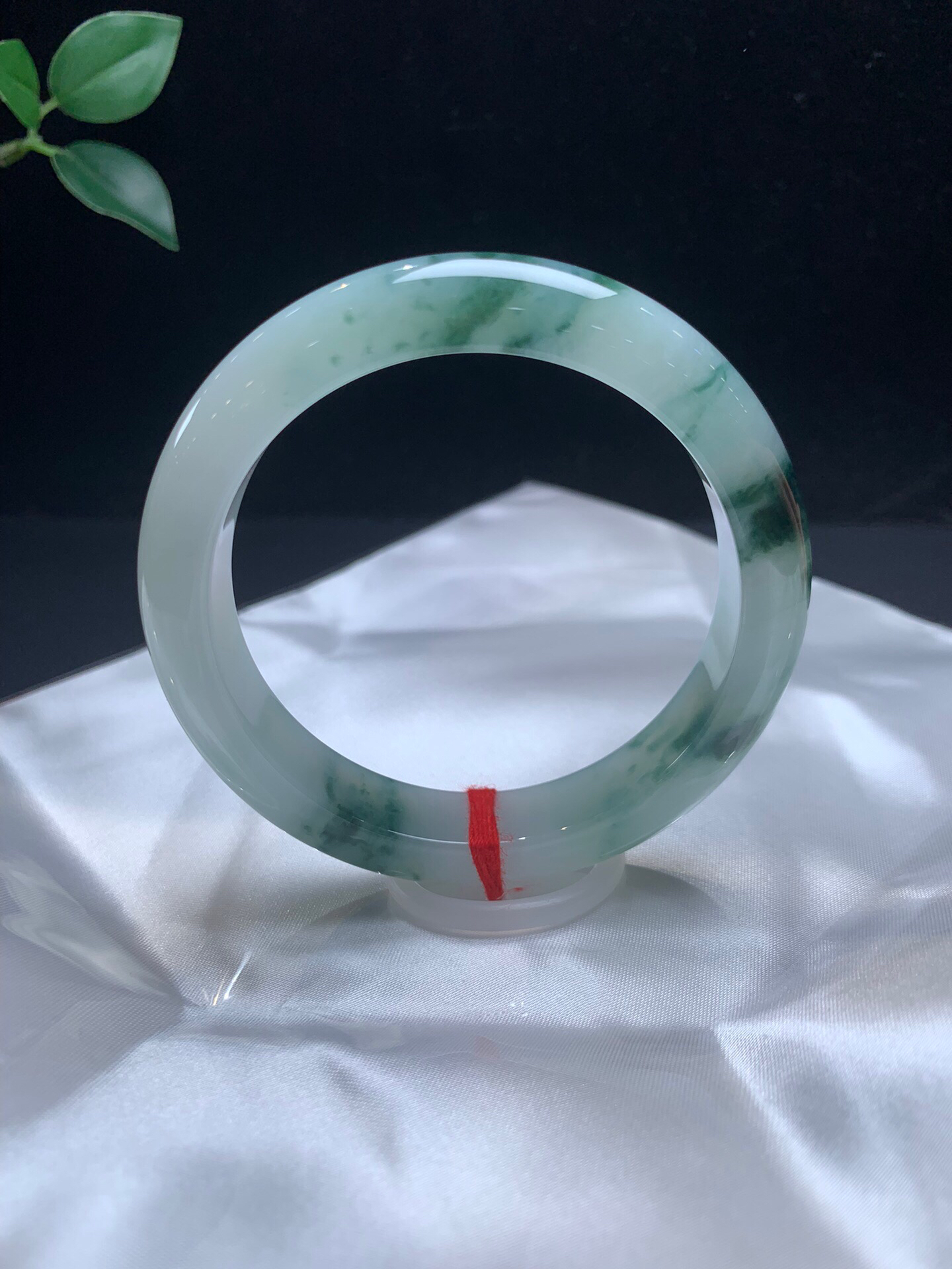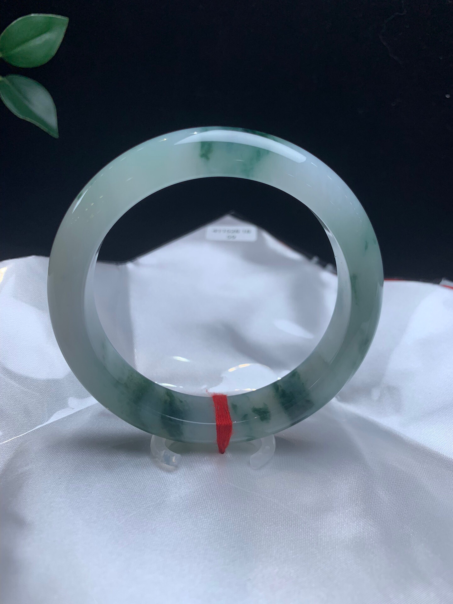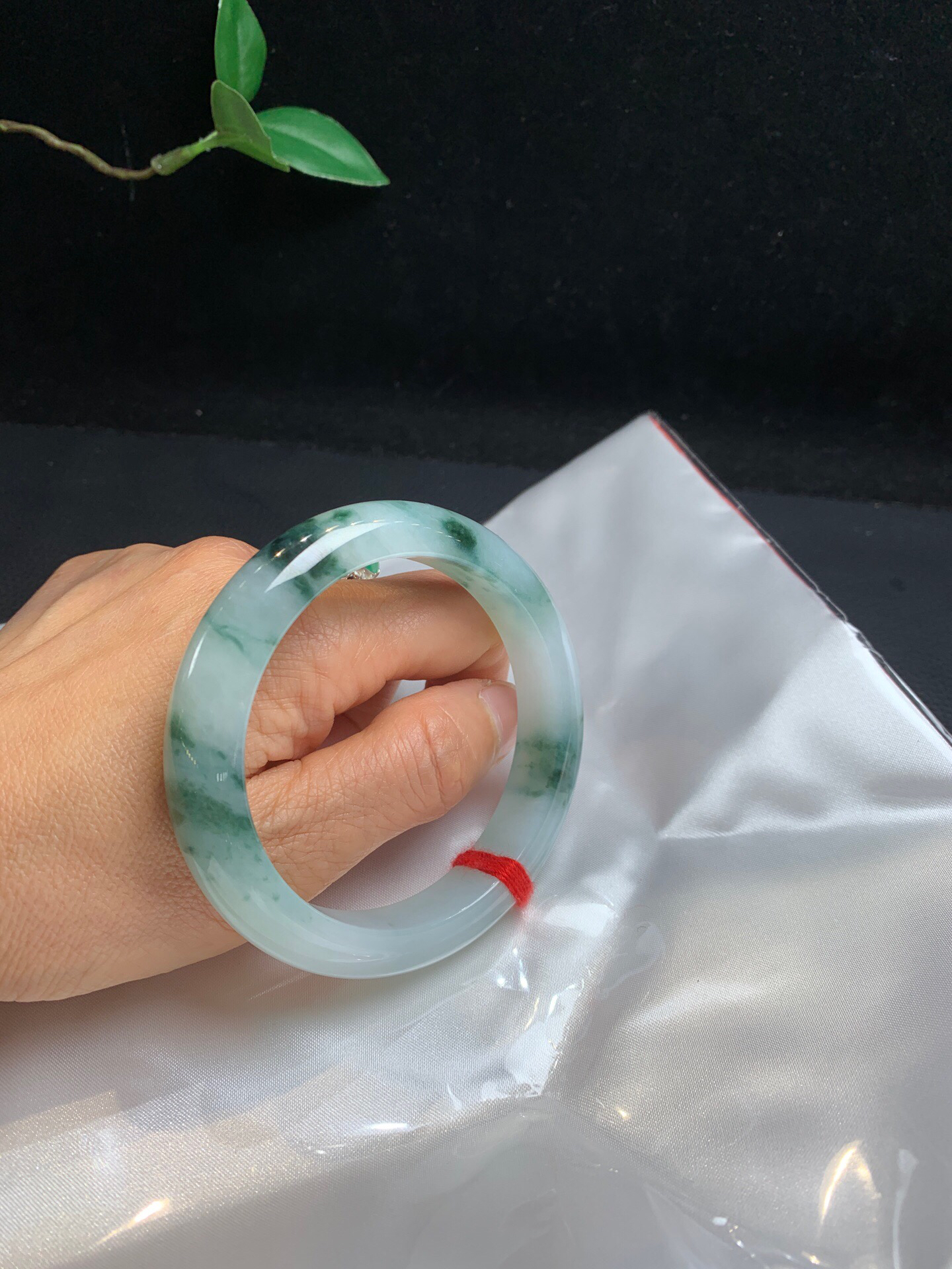 620157,59飘花手镯,12.7-9.5mm,清新白底。大半圈飘蓝花 整体清爽干净,超值价💰42600 #优石客珠宝#香玉荟萃