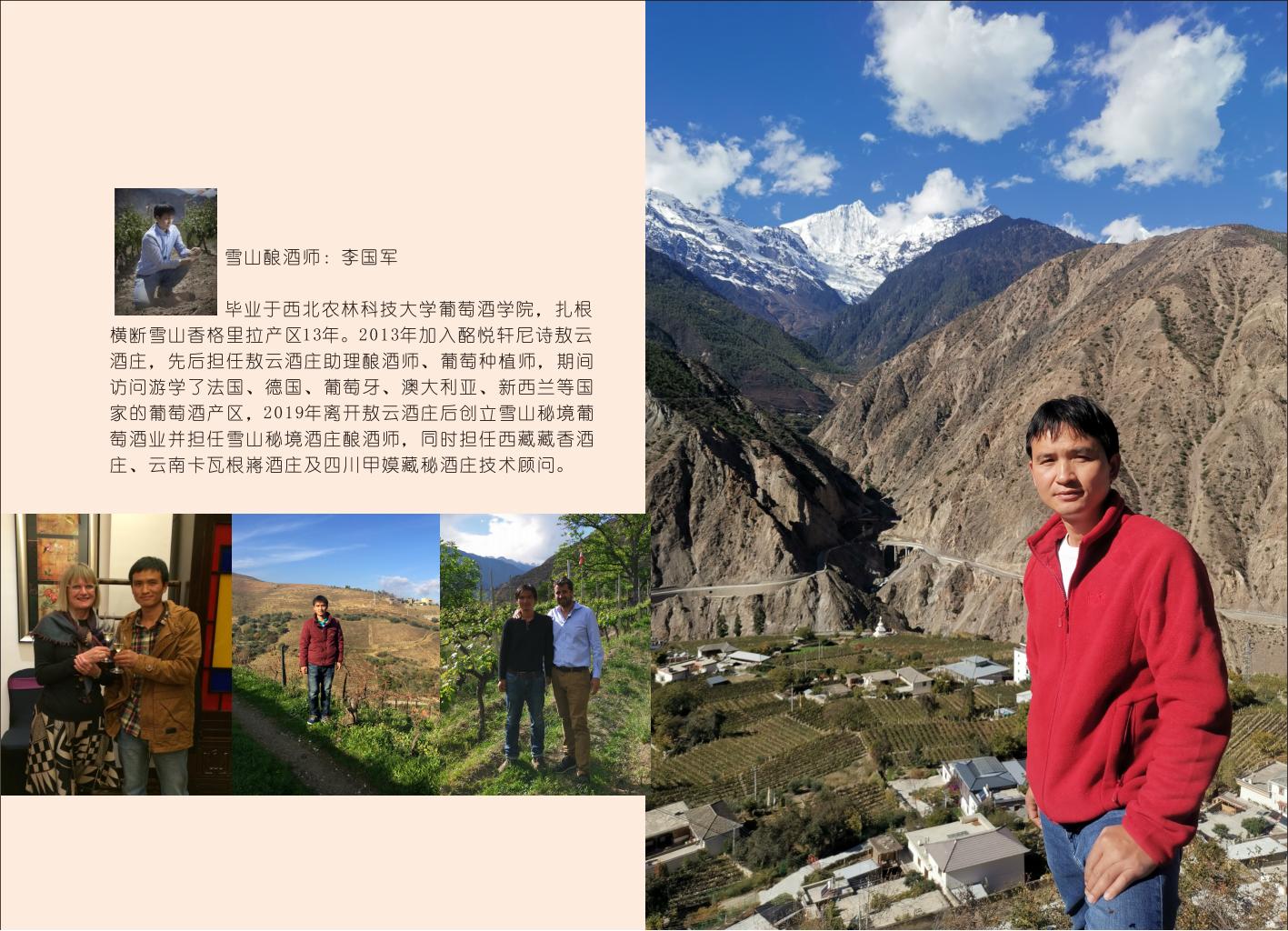 毕业于亚洲第一葡萄酒学院西北农林科技大学葡萄酒学院葡萄栽培与酿酒专业,之后于2010年加入国际知名法国品牌LVMH旗下德钦敖云酒庄,近10工作期间先后担任酒庄助理酿酒师、葡萄种植师,在此期间公司派遣游学法国、德国、葡萄牙、美国、新西兰、澳大利亚等各大葡萄酒产区,有着丰富葡萄种植与酿酒知识及经验。