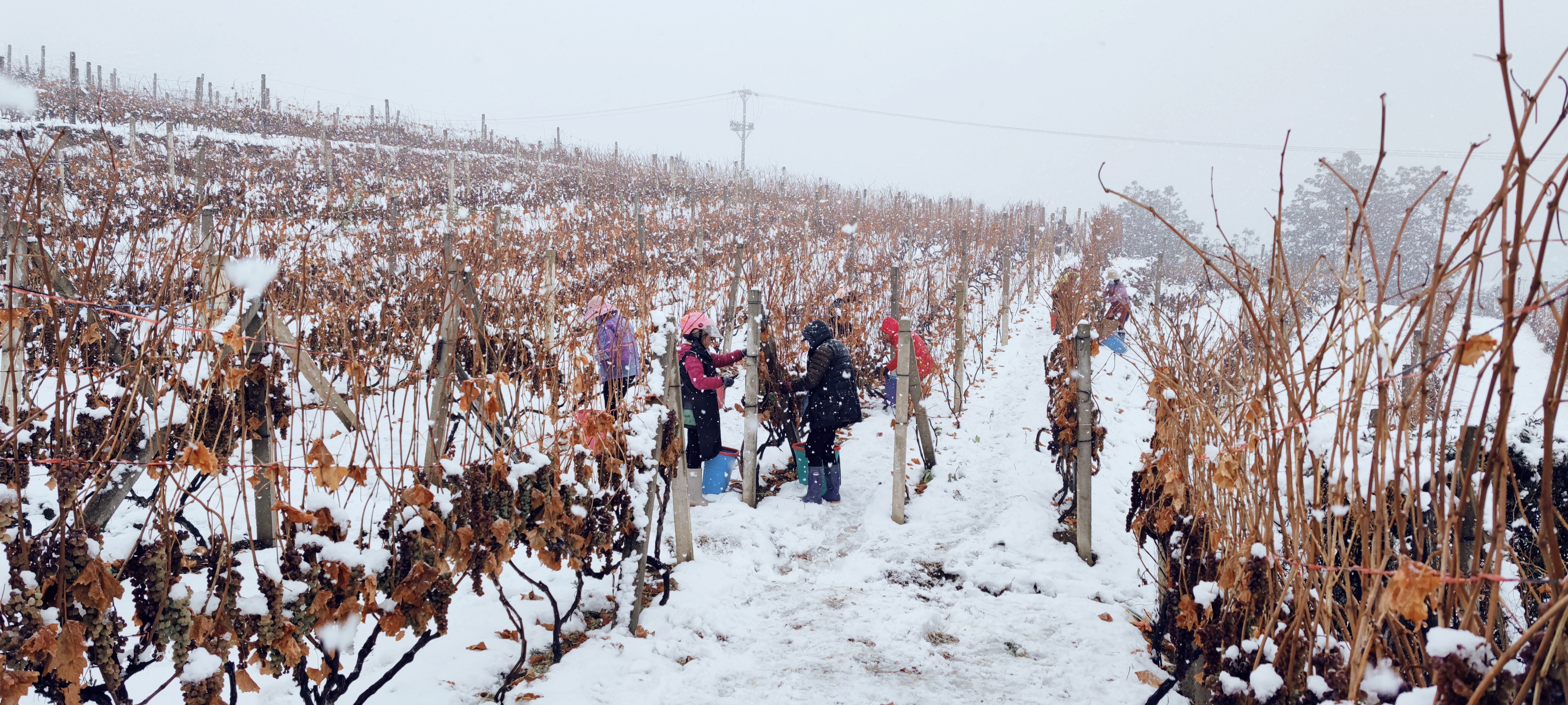 兰永村冰葡萄基地海拔2500-2600米、土壤主要为砂土及砂质粘土,土壤富含有机质及矿物元素,透水性好。非常适合冰葡萄的种植。葡萄园地处澜沧江与金沙江之间海拔2600米的永春河谷,降雨适中(800毫米左右)、有效积温2400度,日照充足、紫外线强、12月底1月初有稳定降雪及零下7度低温,得天独厚的自然条件赋予了冰酒极高的品质。