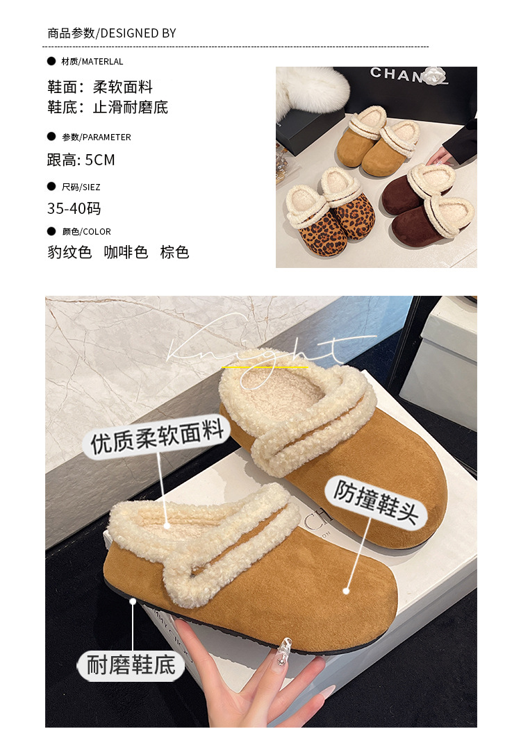 【法式超火网红风❗️勃肯鞋加绒保暖棉鞋】毛毛鞋2025冬季外穿棉鞋女,亲肤内里软糯Q弹吸汗排气,懒人一脚蹬平底女鞋搭扣棉勃肯室内女鞋L
