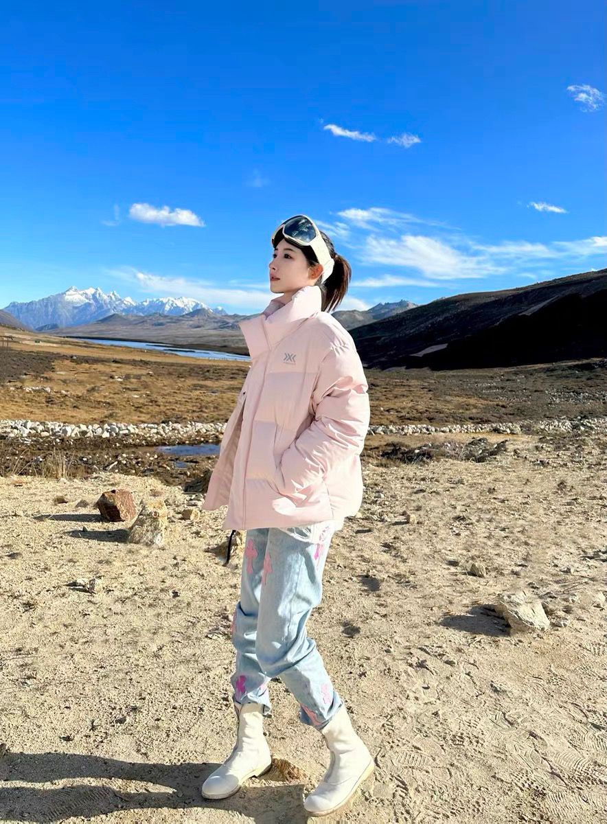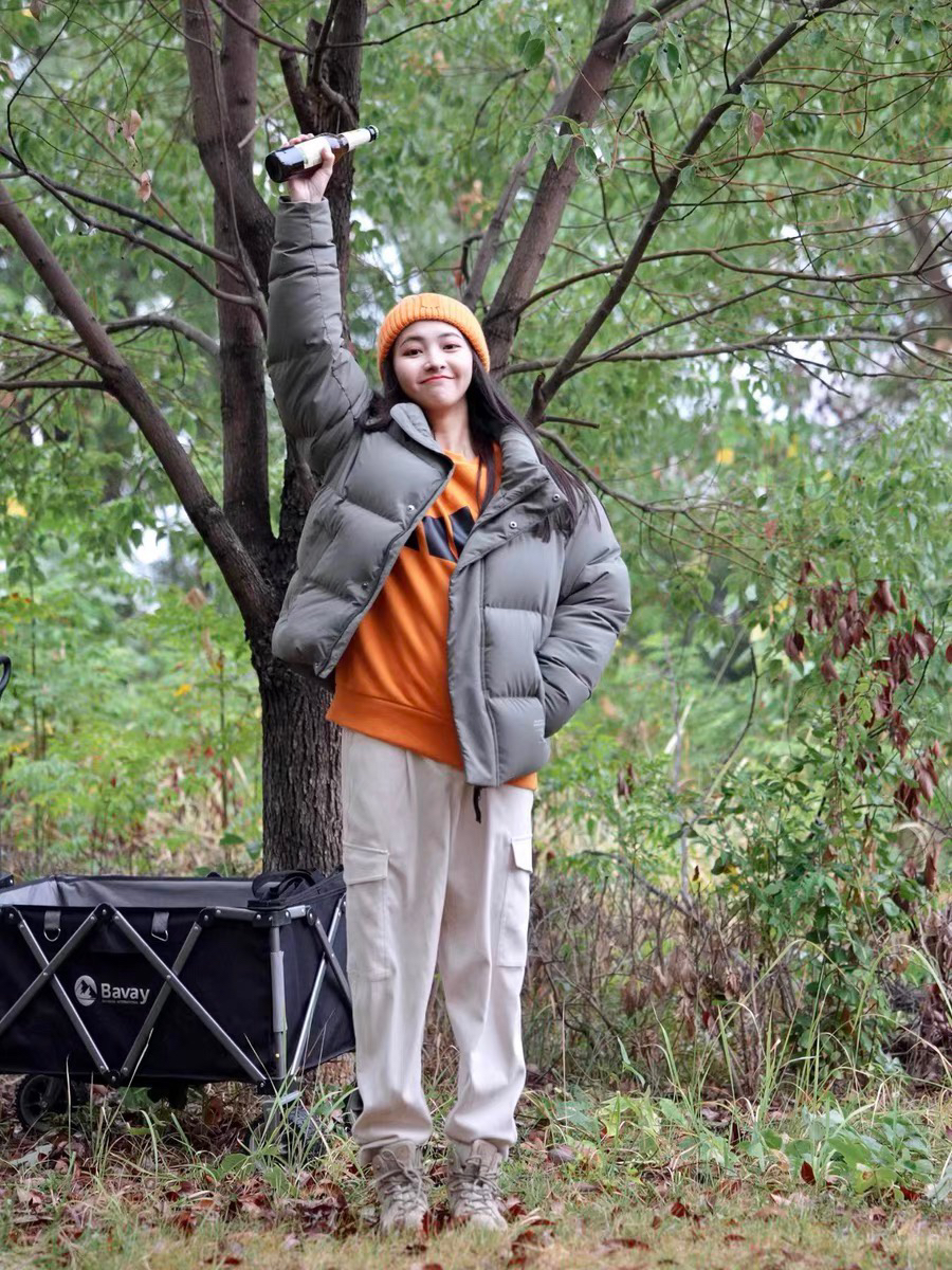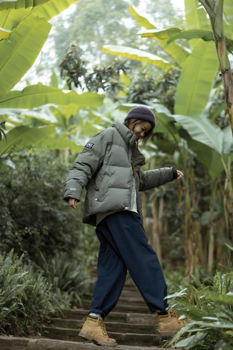 这件XB面包服蓬松度850,满满的白鸭绒,同时重量很轻,搭配卫衣超级赞