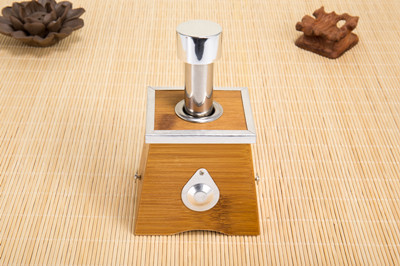 二:将点燃的艾条,放进艾条推送器,插入艾灸盒,调至所需的高度即可施灸。
