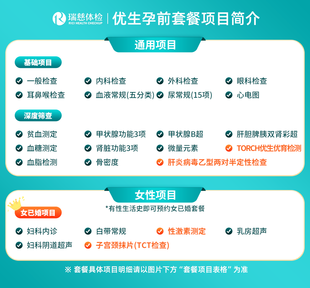 | 套餐名称:瑞慈优生孕前体检套餐 |